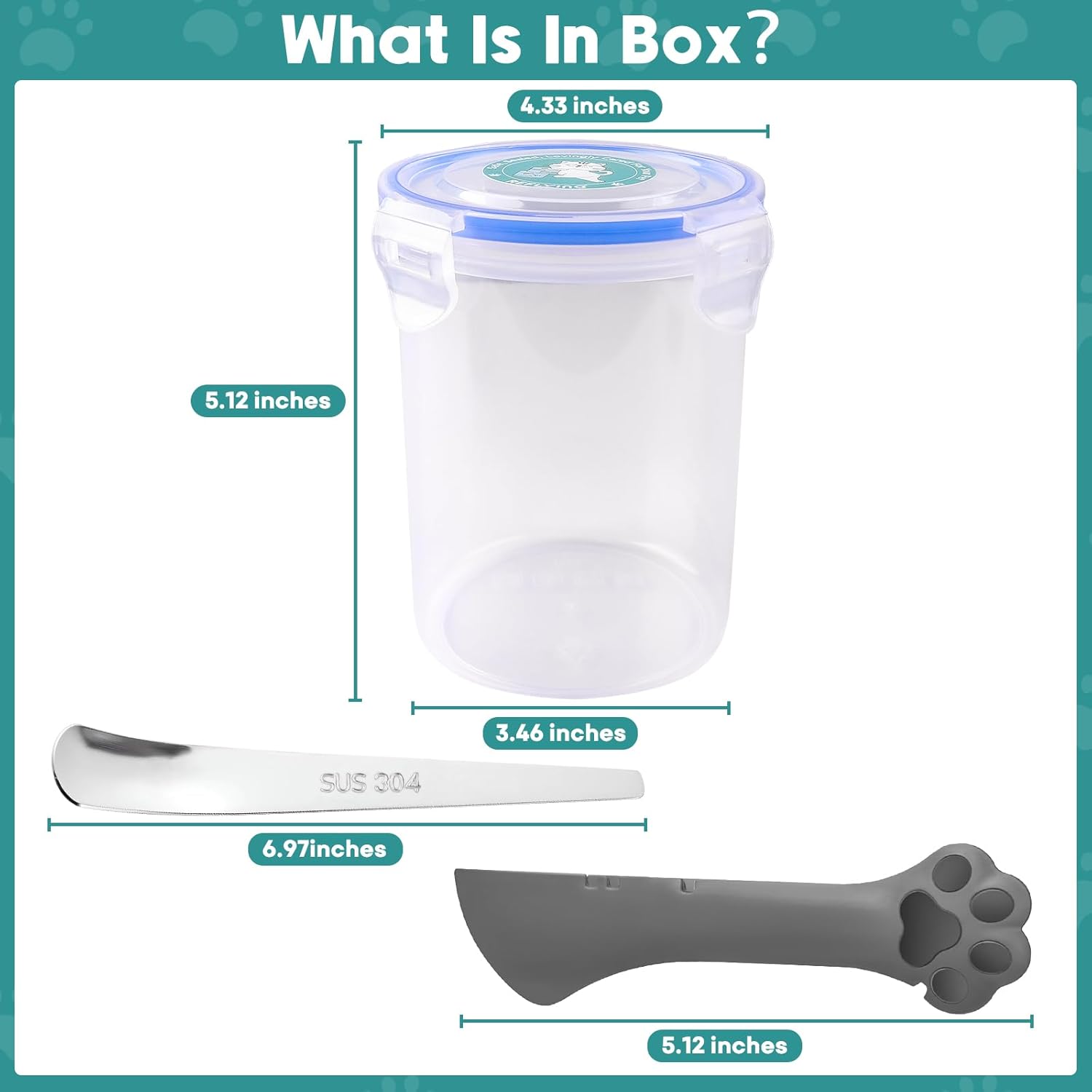 - FITS MOST 6.5oz PET FOOD CANS: This versatile pet food storage container is designed to fit most standard-size cat & dog food cans. This air tight dog food storage container measures 5.12 x 3.46 inches, accommodating most standard 14 oz cat & puppy can food sizes