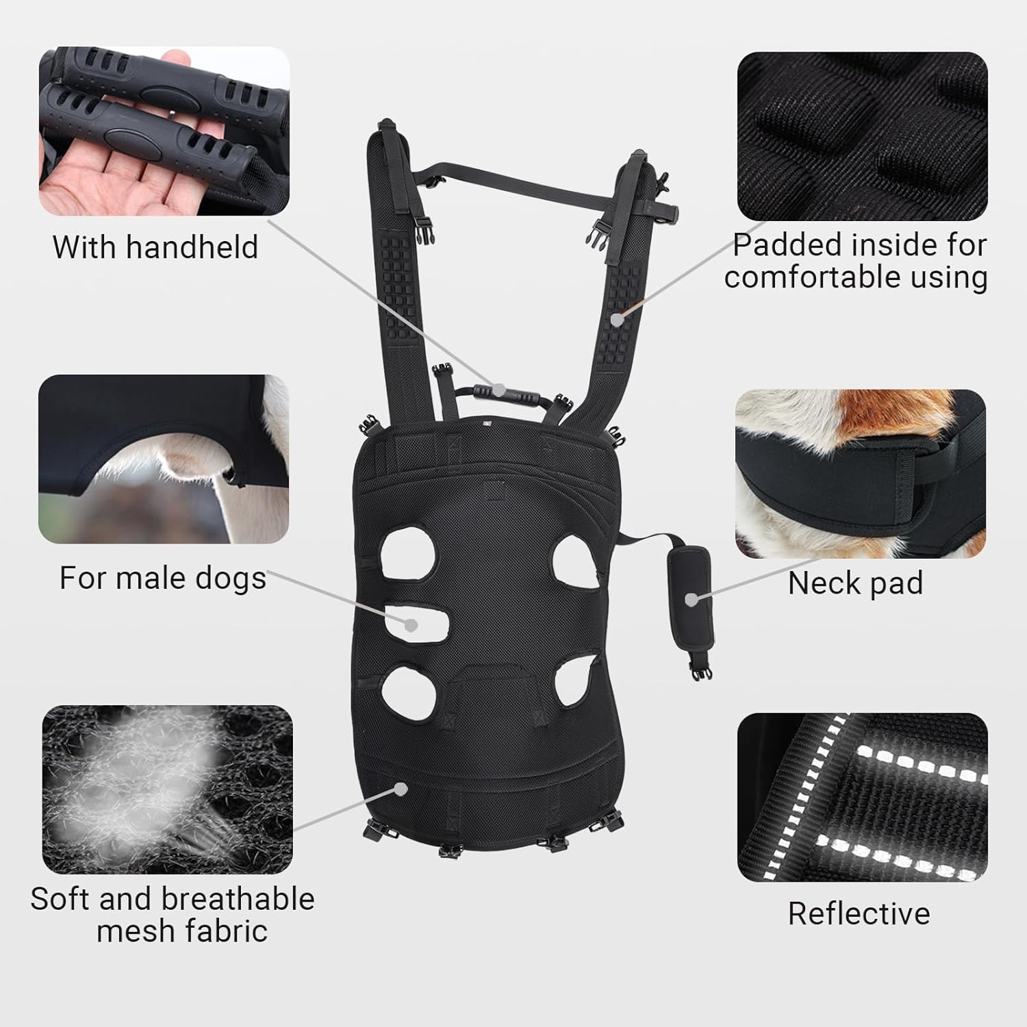 - 【Full Body Support Dog Sling Carrier】 Our full-body dog sling provides exceptional support for injured, disabled, or arthritic dogs. This dog lift sling helps alleviate the pain of orthopedic injuries, shoulder or hip dysplasia, and arthritis, while also improving your dog's mobility. The adjustable straps ensure ergonomic support for you, making carrying easier and more comfortable, whether you're walking, riding, or climbing with your dog.