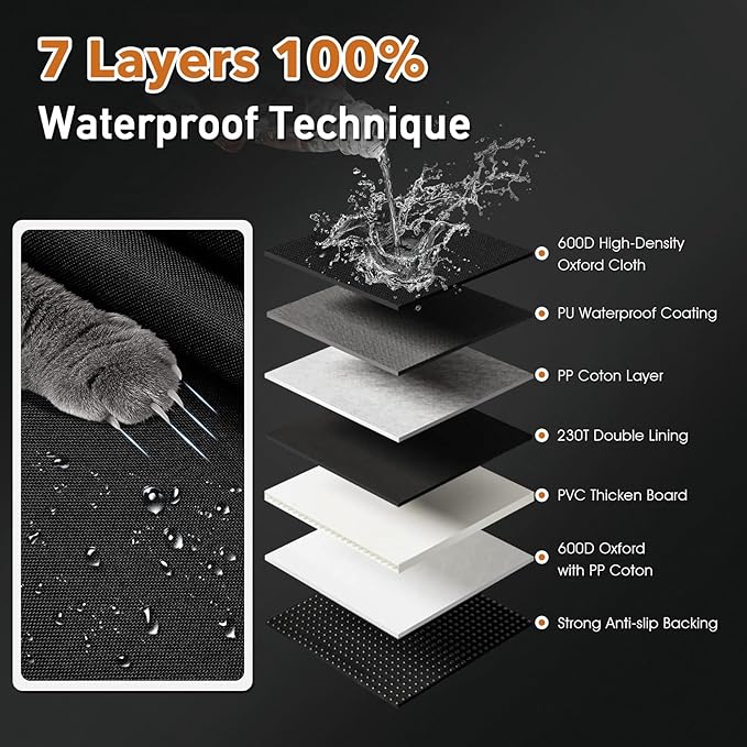 - [100% Waterproof technique]: The back seat extender for dogs is made of 7 layers oxford fabric with no-pinholes technique, featuring a 100% waterproof. The dog seat extender can be machine washable after taking out hard bottom panel.