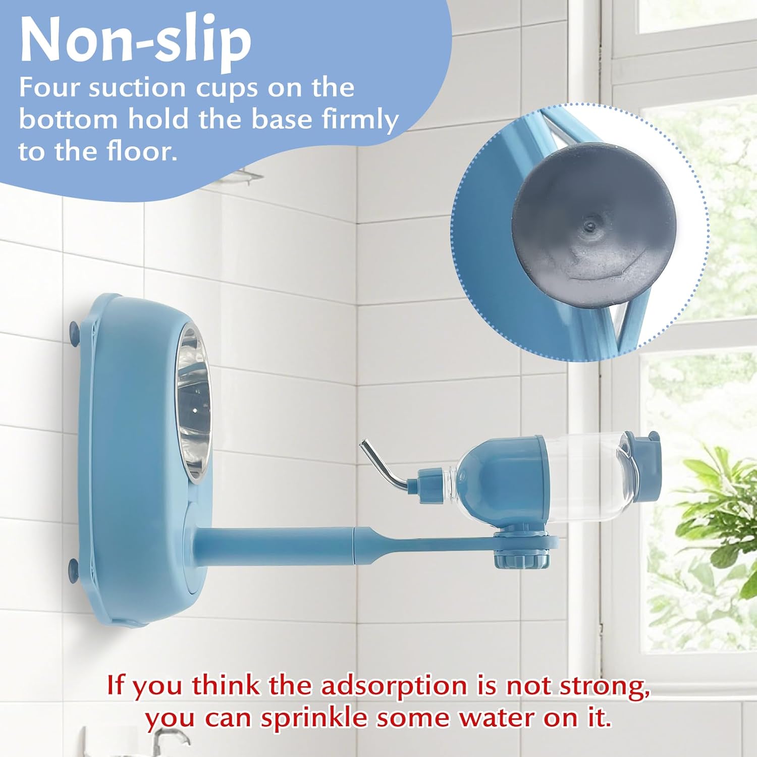 - Suction Cup Bottom Design: There are four strong suction cups on the bottom to keep this water bottle firmly on the ground without being pushed away by your pet. Detachable design, easy to change water and clean