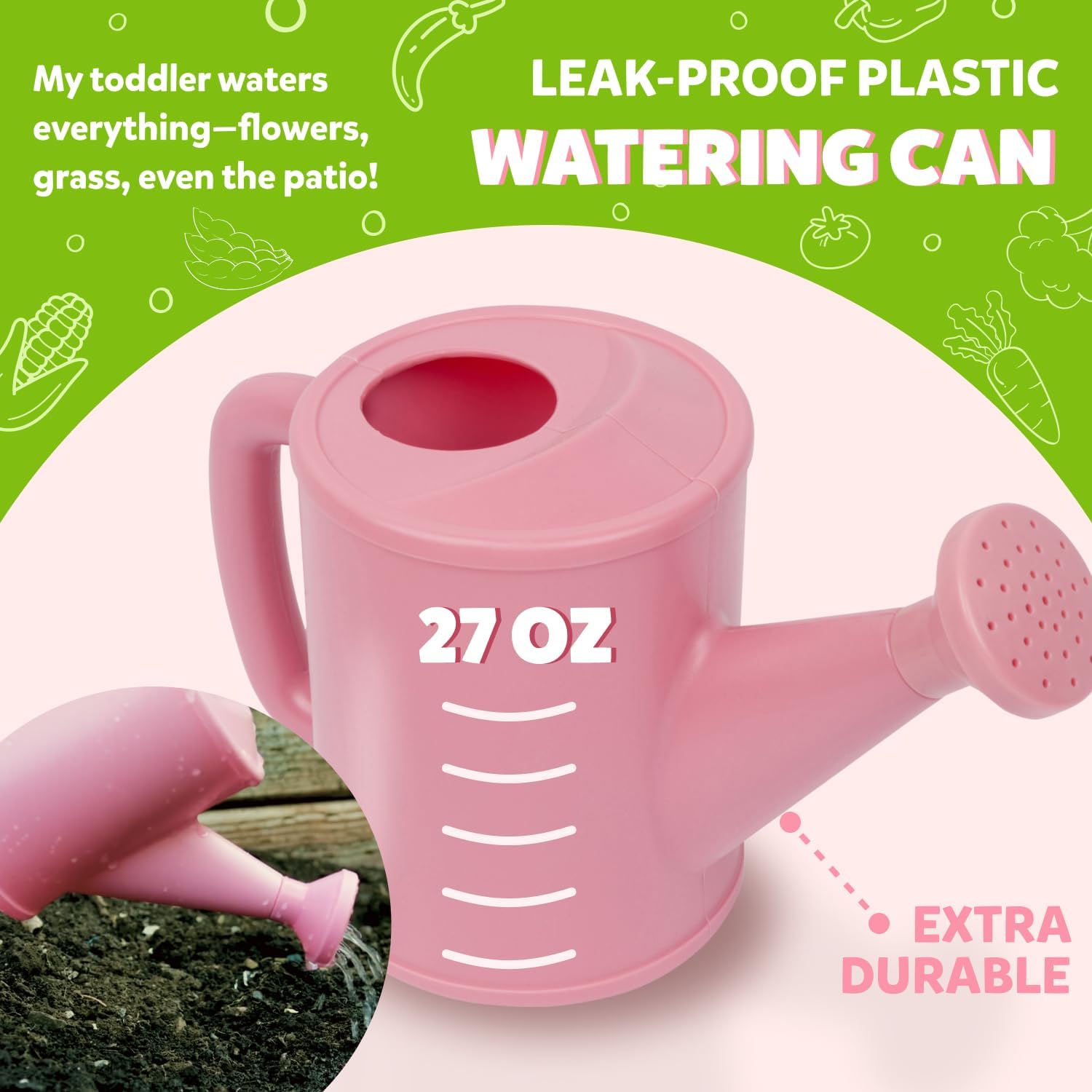 - DURABLE WATERING CAN – LEAK-PROOF, NO CRACKS OR CHIPS! – Made from thick, high-quality plastic that won’t break like cheaper ones. “My toddler waters everything—flowers, grass, even the patio!”