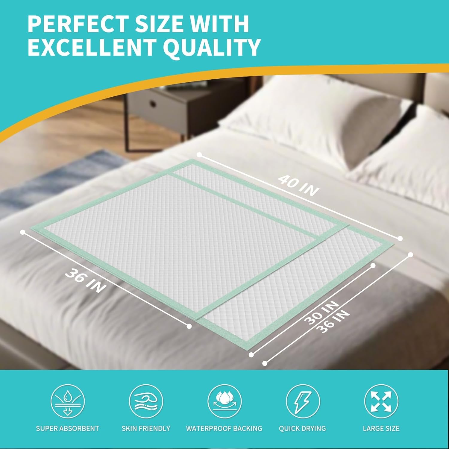 Disposable Bed Pads 40"X36" Extra Large Chucks Pads for Adults 130G Heavy Duty Pads Super Absorbent Underpads Waterproof Pee Pads for Incontinence, Mattress or Large Pets [100x91CM, 20pcs]