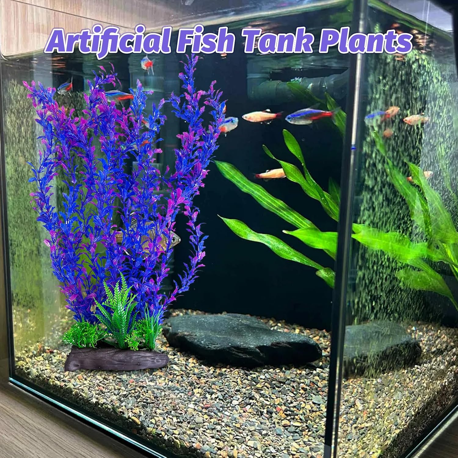 - RELIABLE MATERIAL OF FISH TANK DECORATIONS : Our fake water plant leaves and roots are made of soft plastic material that won't affect the water quality. The leaves do not have sharp edges and have a soft texture, which can effectively avoid any physical damage to the fish while swimming or playing, and aquarium decor can better beautify the e-nvironment, fish tank plants maintain stability and not fade. Fake aquarium plants provide a comfortable and clean living e-nvironment for fish. Whether placed in a saltwater e-nvironment or freshwater e-nvironment, aquarium plants plastic realistic can be perfectly adapted