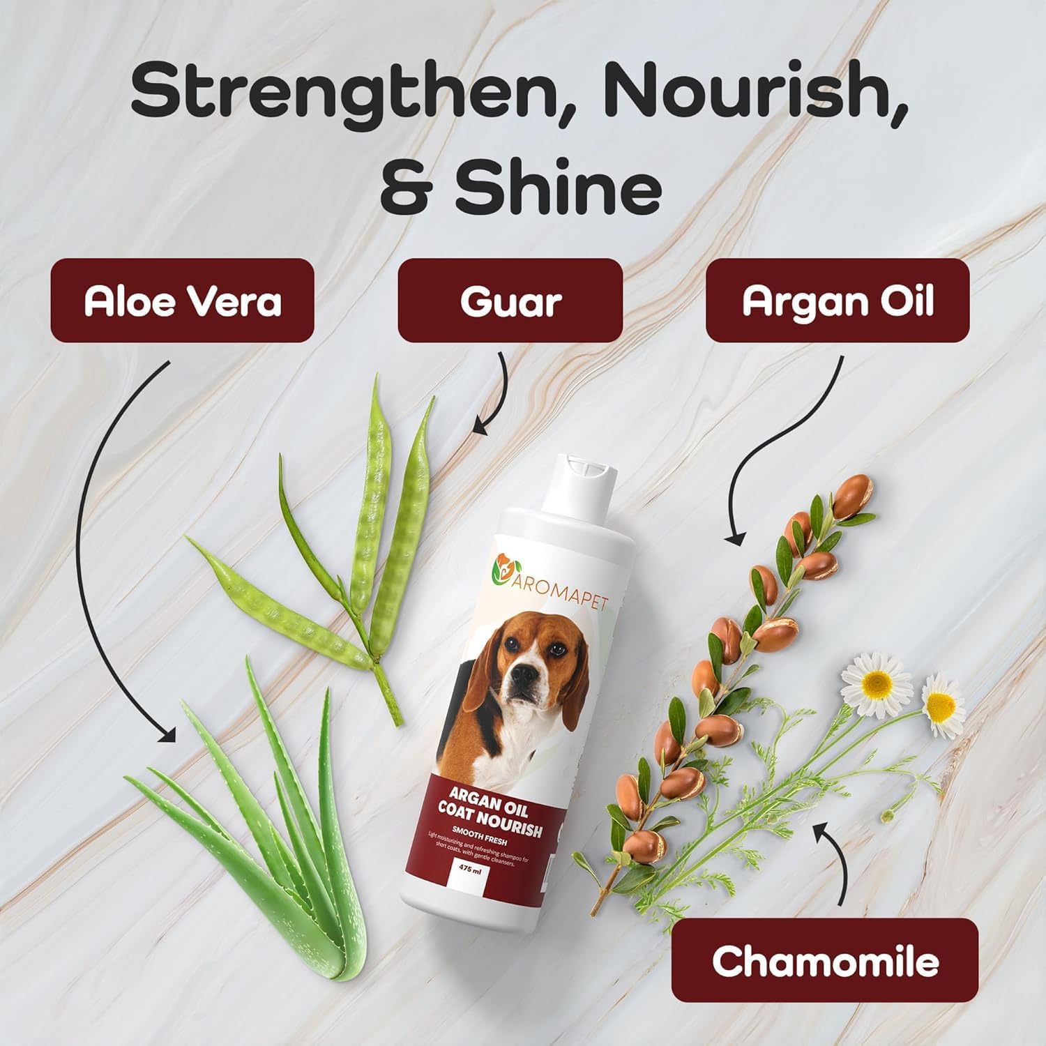 Argan Oil Coat Nourish Dog Shampoo - Deodorizing Dog Shampoo with Chamomile - Great for Beagle, Short Coats & Sensitive Skin - Hypoallergenic Light moisturizing with Gentle cleansers.