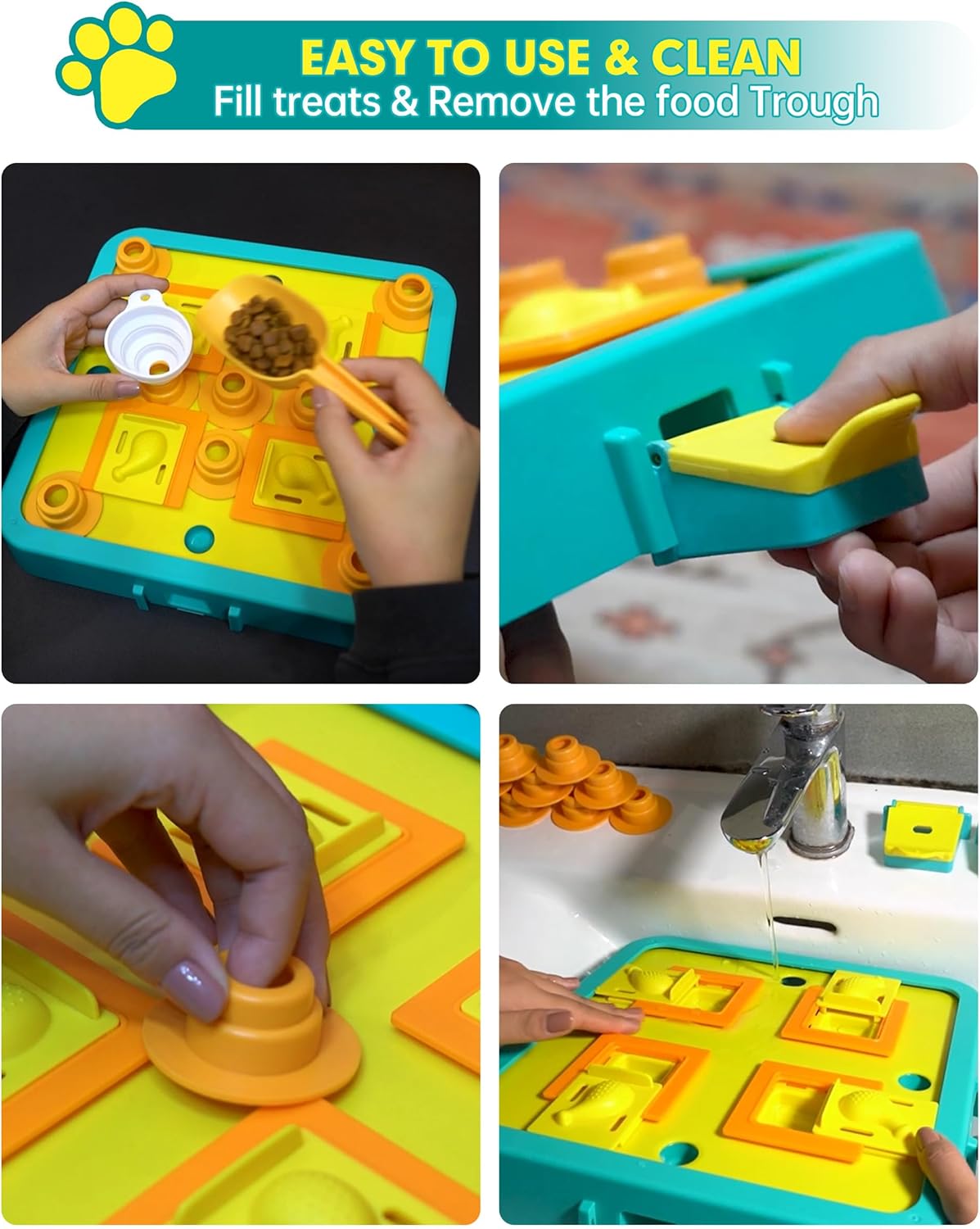 - Dog Puzzle Toy - Watch as your dog enjoys the challenge of figuring out how to access the hidden treats within the various compartments of this puzzle toy. Let them work for their snacks, Stimulate their brains and encourage problem-solving abilities while keeping them entertained and engaged.