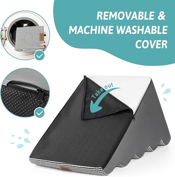 - HIGH DENSITY SPONGE: stairs for dogs to get on the bed adopt 30D high-density pure sponge, which provides better support while providing a soft return contact surface, reducing the pressure on the joints when pets repeatedly jump on high bed, sofa, couch and car. The stairs are covered with high-quality corduroy to provide additional stability