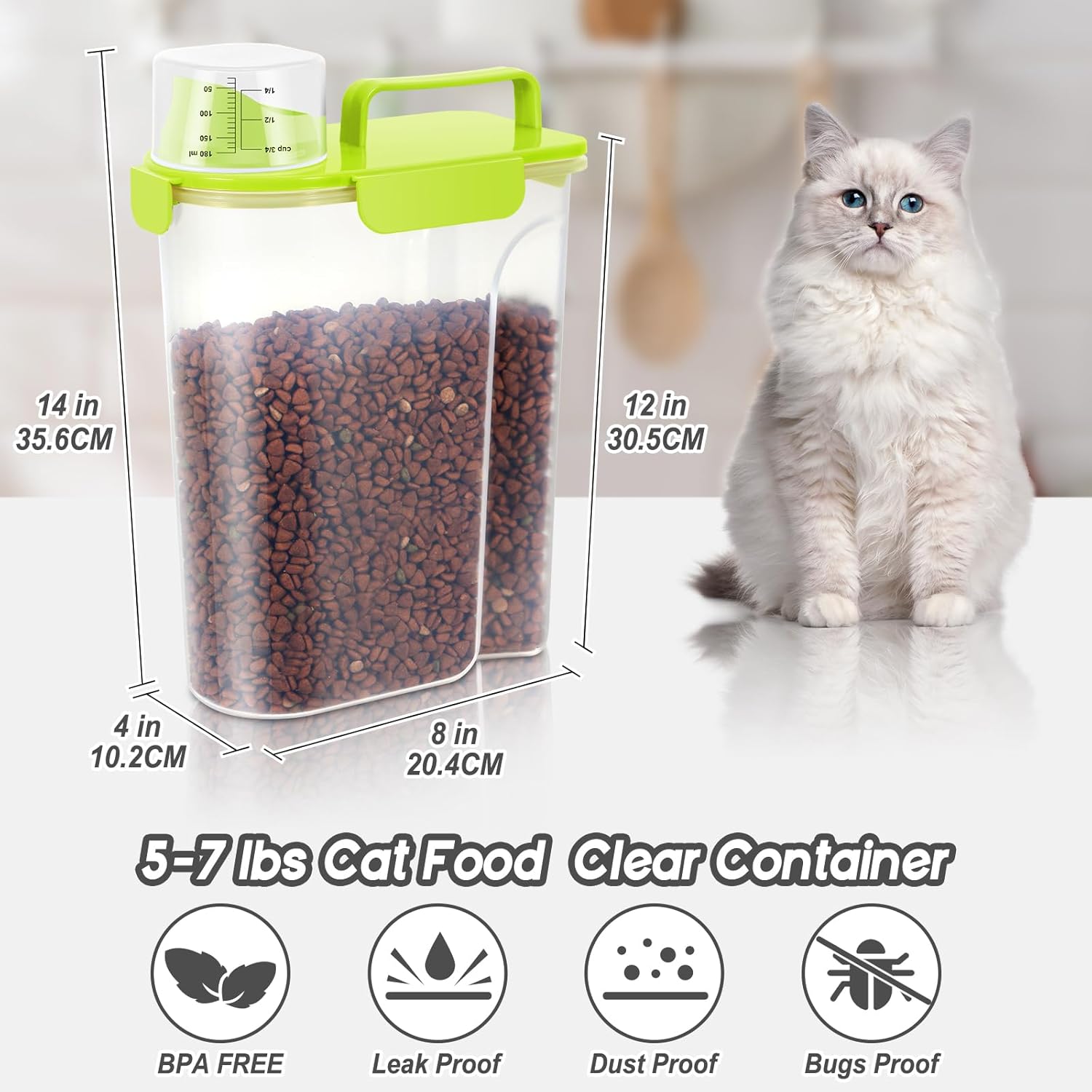 5-7Lbs Cat Dog Storage Container, Portable Pet Food Containers with Upgraded Large Spout and Cup, Small Animal Kibble Dispenser for Bird Seed, Oatmeal, Rice, Flour (2, Bright Green, 5L)