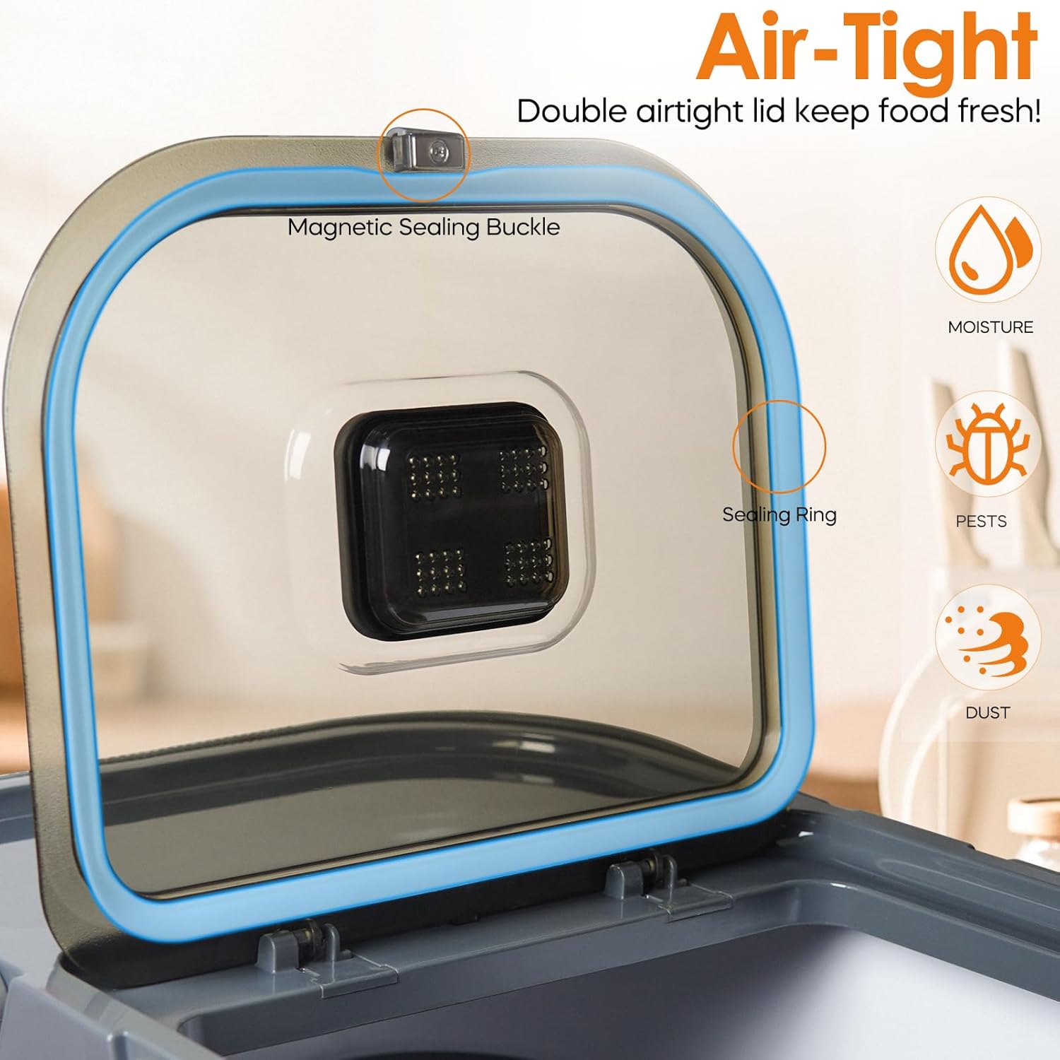 - 【Moisture Protection】This dog food storage bin also comes with a sealing Ring, ensuring lasting freshness and allowing you to add desiccants for extra protection.