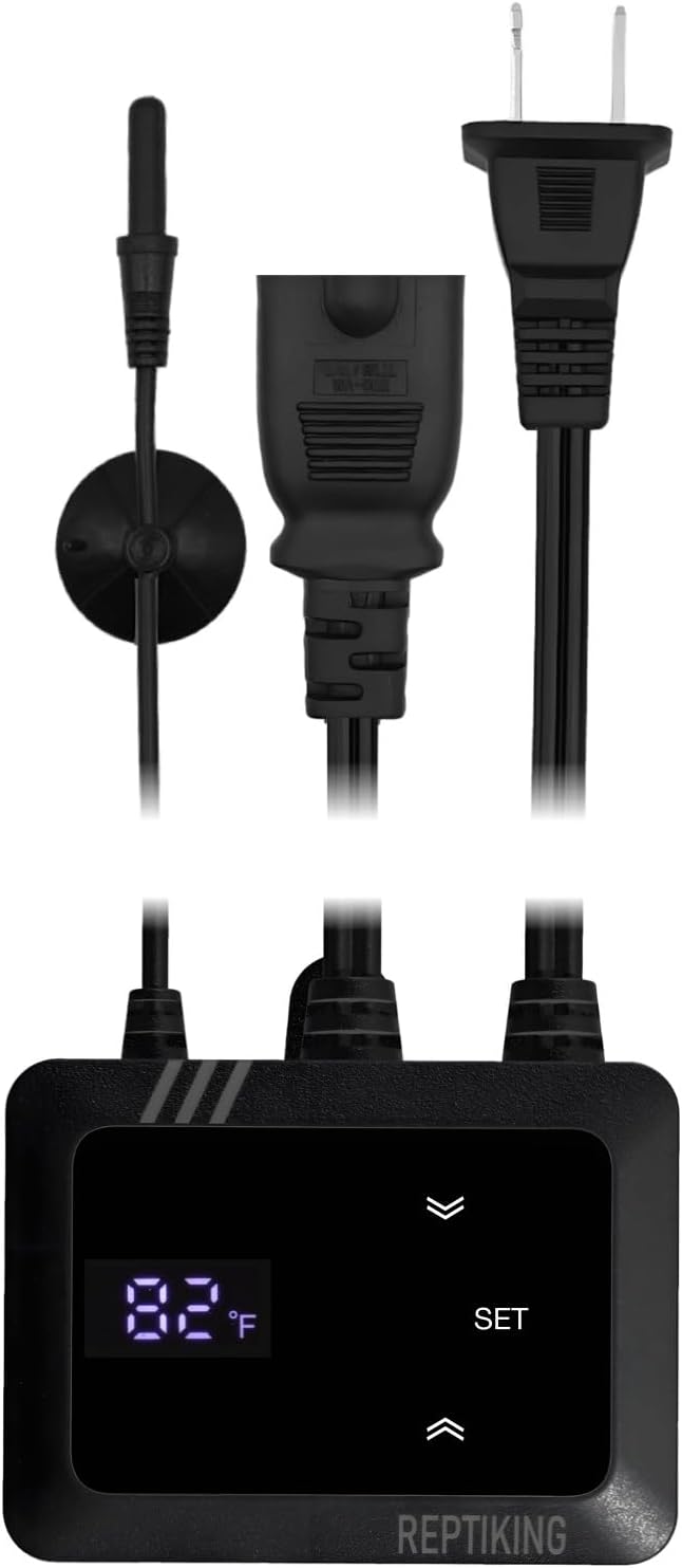 - Easy to use, just connect the reptile light fixture with bulb to the female socket of the thermostat and power on; the temperature control probe with suction cup is easy to fix. The digital display shows the real-time temperature of the target space clearly and accurately.