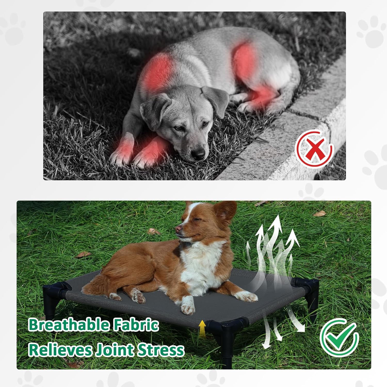 - BREATHABLE TESLIN MESH: This outdoor dog bed comes with breathable and durable Teslin mesh, provides airflow and firm support to relieve joint pressure. Our dog cot bed is suitable for dogs of all life stages, from puppy to the senior