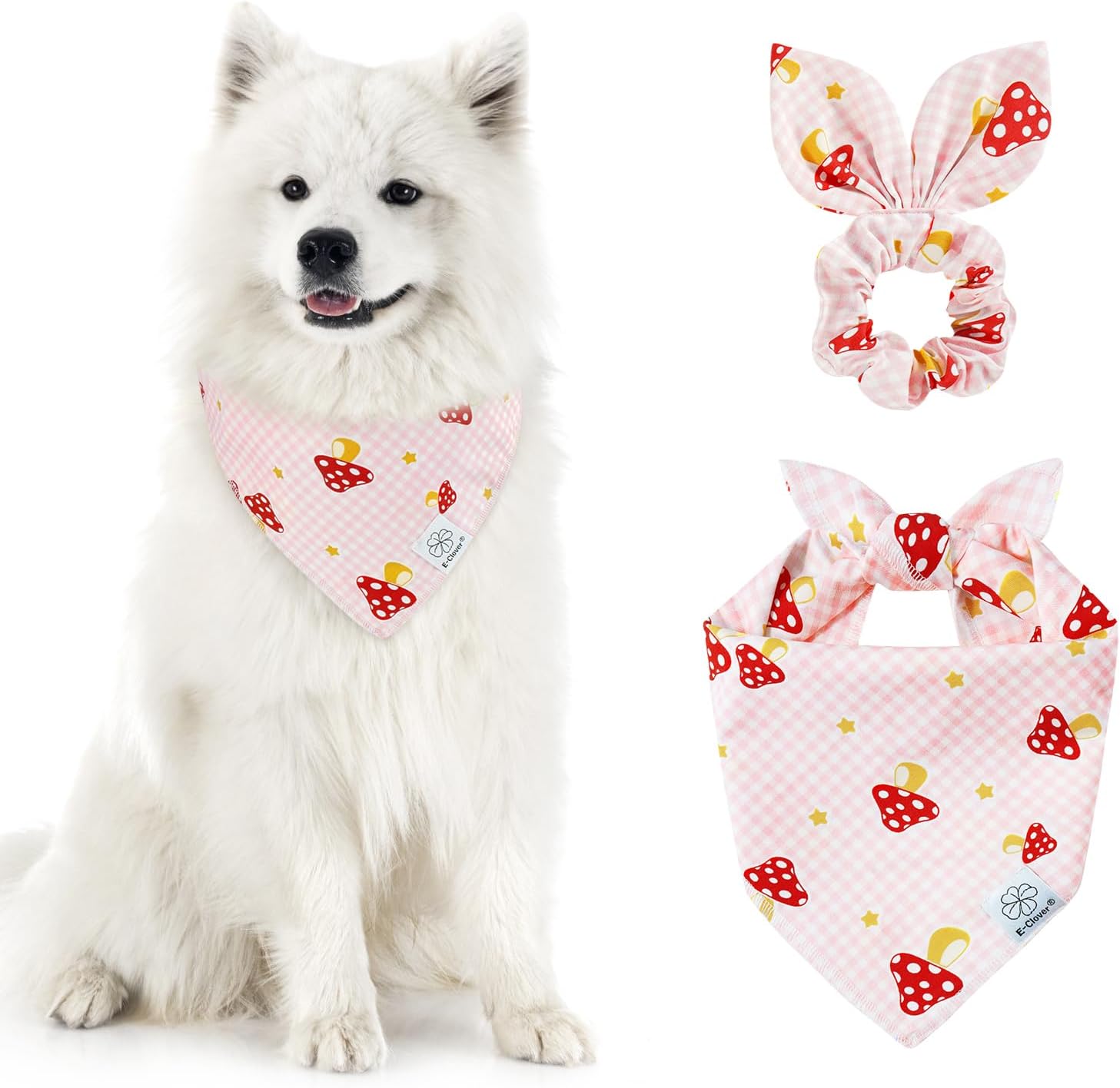 - Matching Bandana and Scrunchie Set- It’s full of love when your pets is wearing the pink plaid bandanas and you are wearing the bow scrunchies. When traveling, sleeping, taking photos or daily warking, adorable dog spring bandana and scrunchie is a pretty accessories. The the hair tie can be worn as a wrist accessory and hold your hair. Beautiful dog drool bibs and scrunchie with pink buffalo plaid and mushrooms pattern, it’s nice photo props.