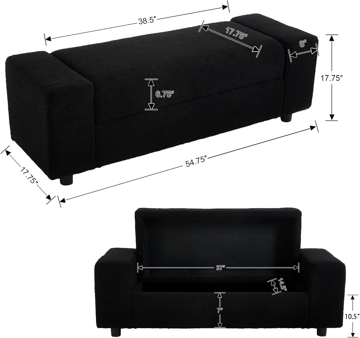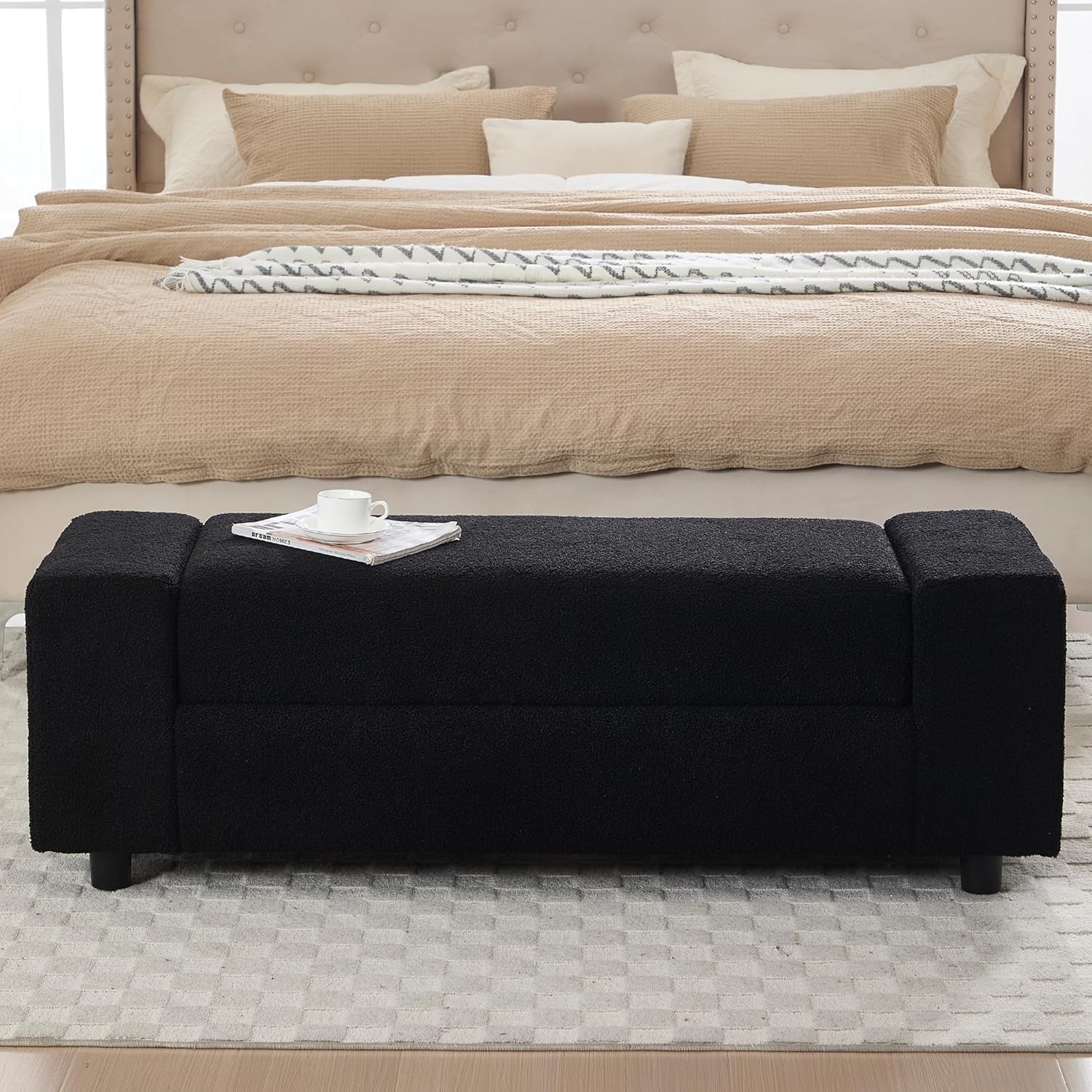 Teddy Storage Ottoman Bench for Bedroom, Comfy Boucle End of Bed Bench with Large Hidden Storgae Space, 55 inches Window Bench for Living Room/Reception Room/Mudroom, Black