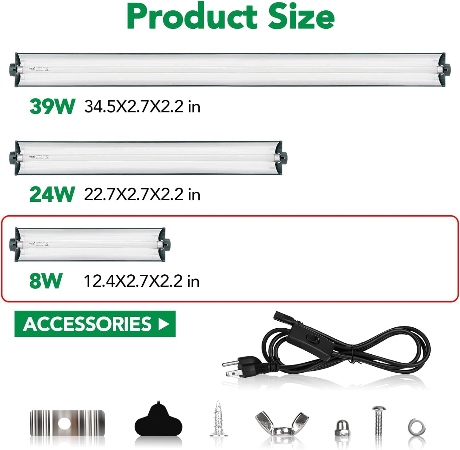 - Special jungle green design for more concealment and individuality T5 terrarium kit light fixture:12 inch, 5.9ft power cord of lamp accessories and heat lamp accessories for hanging.Uvb reptile light fixture with removable power cable with convenient on/off switch, t5 uvb reptile light fixture easy to use in vivarium reptile tank.One purchase to meet the lighting needs of your reptile pets. T5 reptile light fixture provide 10.0 uvb perfect lighting environment for your reptile pets.