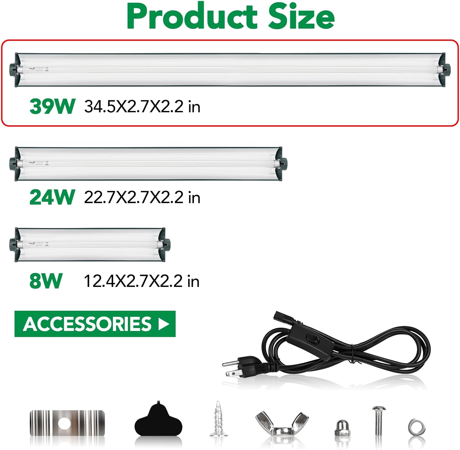 - Special jungle green design for more concealment and individuality T5 terrarium kit light fixture:33.5 inch, 5.9ft power cord of lamp accessories and heat lamp accessories for hanging.Uvb reptile light fixture with removable power cable with convenient on/off switch, t5 uvb reptile light fixture easy to use in vivarium reptile tank.One purchase to meet the lighting needs of your reptile pets. T5 reptile light fixture provide 10.0 uvb perfect lighting environment for your reptile pets.