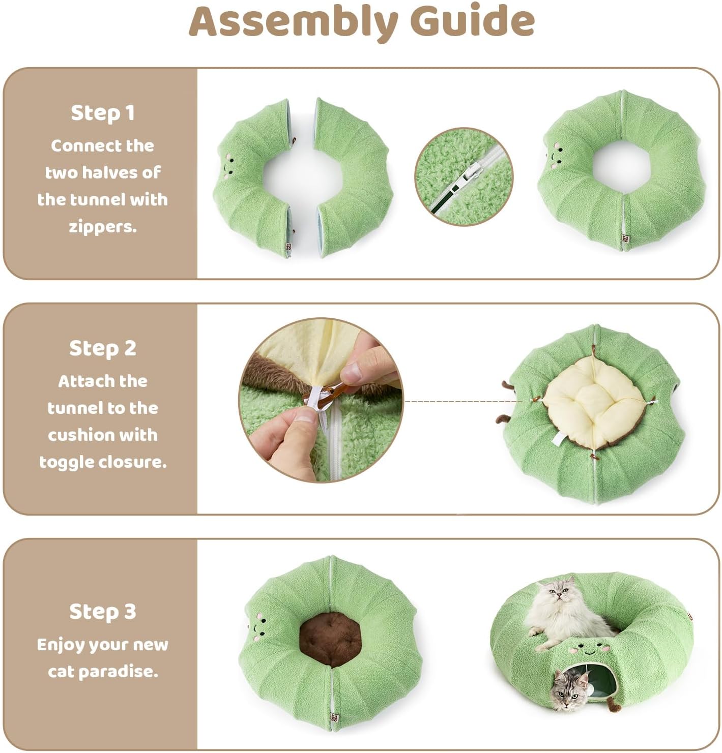 • Easy to Clean: With your convenience in mind, EHEYCIGA cat tunnel bed is effortless to assemble and quick to store. The removable cushion is machine washable.