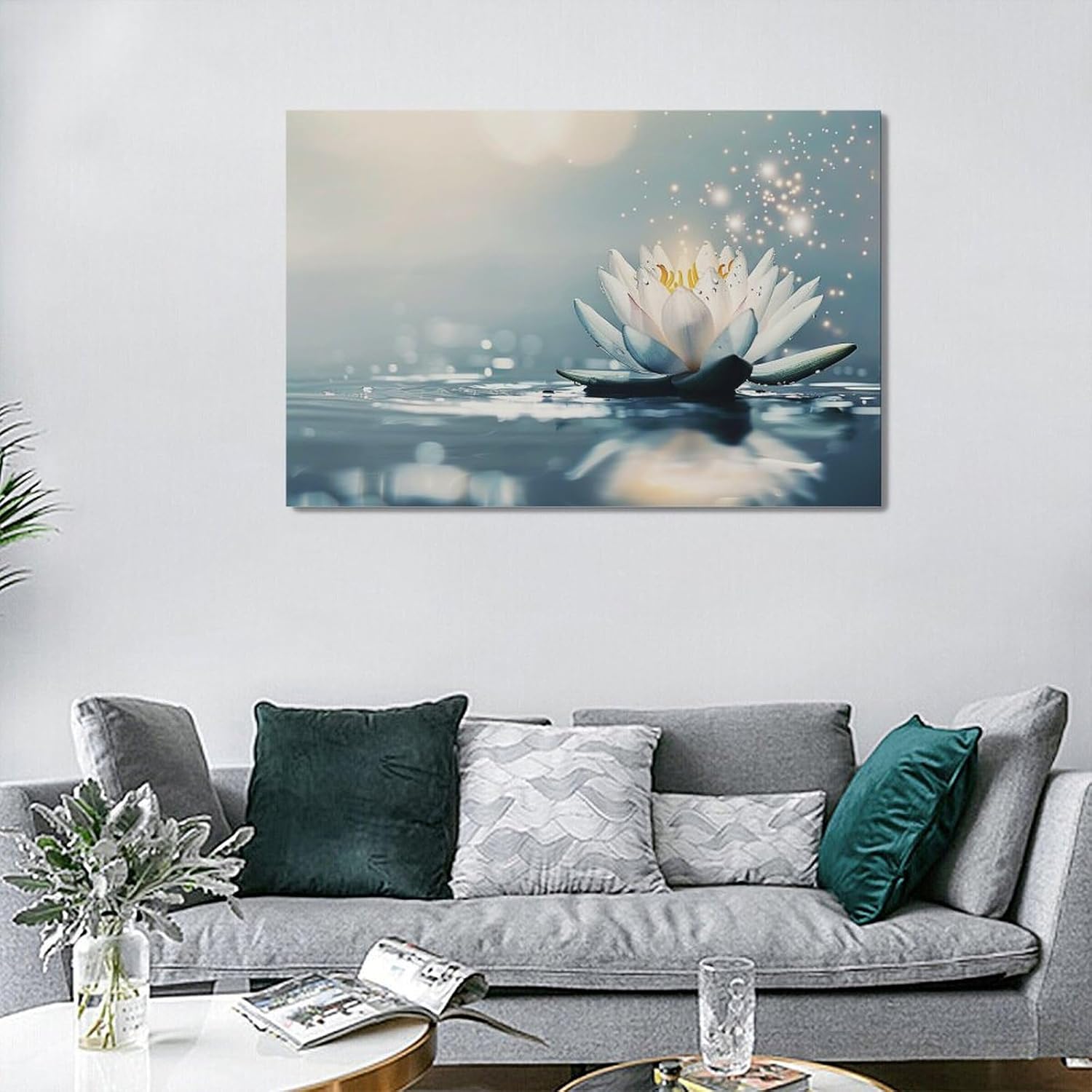 Bathroom Lotus Wall Art Floral Pictures Zen Meditation Wall Decor Yoga Spa Spiritual Canvas Print Painting Artwork for Bathroom Restroom Living Room Bedroom 16"x24"