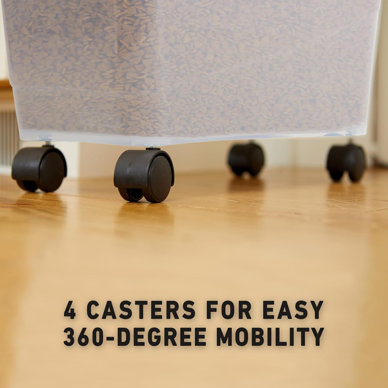 - EASY MOBILITY: Equipped with smooth-glide wheels, this rolling dog food bin makes moving heavy food bags simple—no more lifting heavy dog food containers