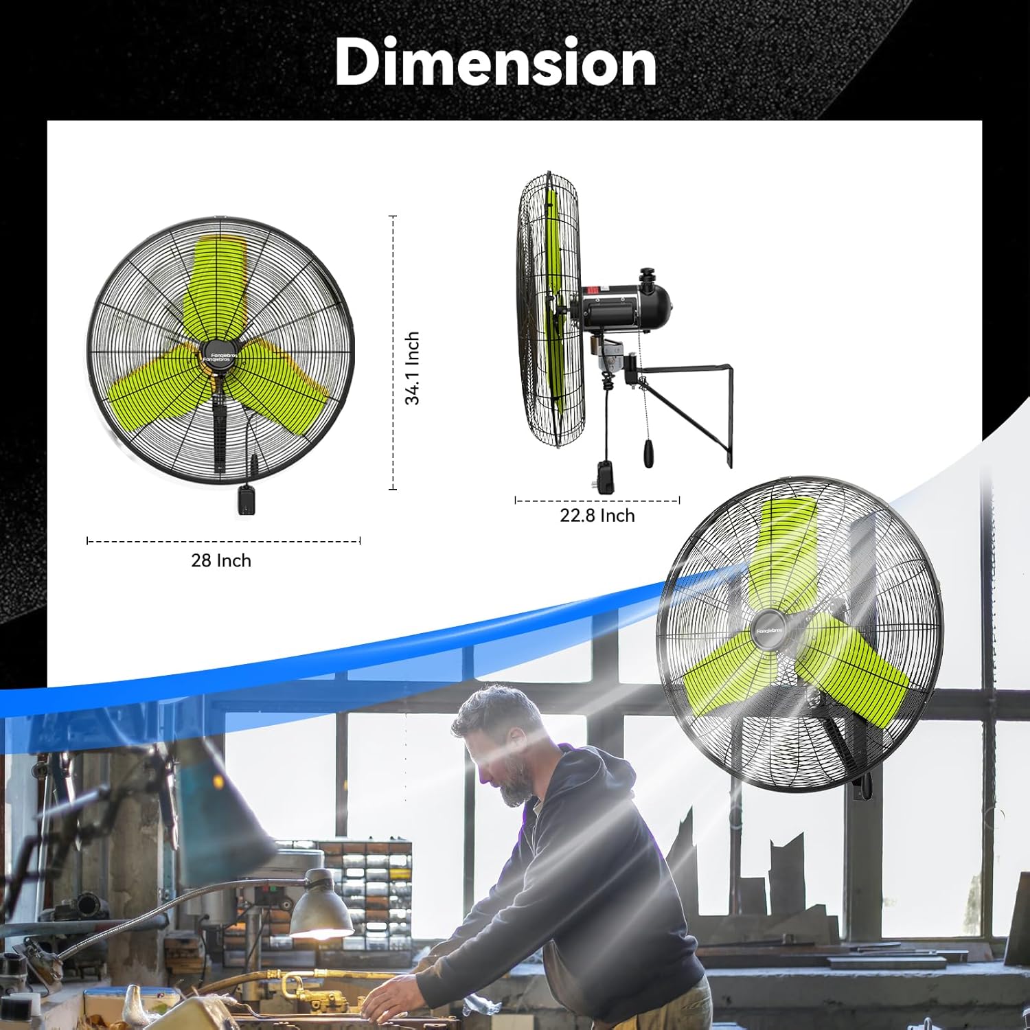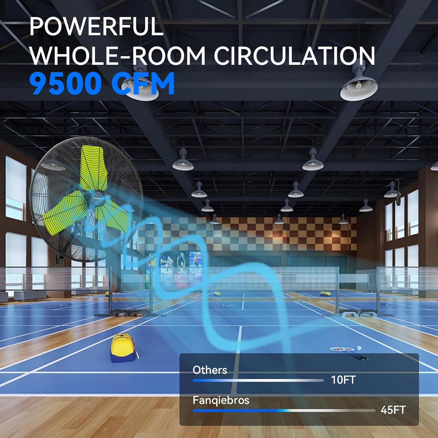 - ๐๐จ๐ฐ-๐๐จ๐ข๐ฌ๐ ๐๐๐ฌ๐ข๐ ๐ง - The heavy-duty wall fan operates at a high speed of 9500 CFM with a noise level of only 65dB, which is lower than the industry standard, creating a quieter gathering or working environment