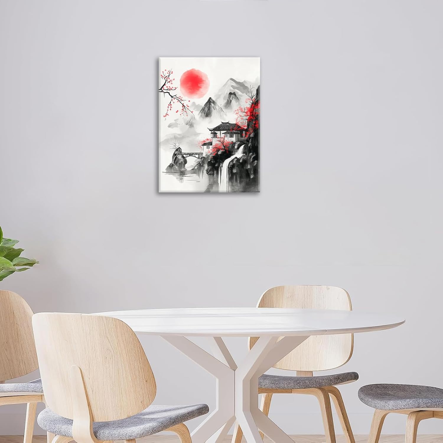 Japanese Wall Art Canvas Asian Nature Wall Decor Prints Framed Painting Mountain Landscape Pictures Gifts Artwork for Bathroom 12"x16"