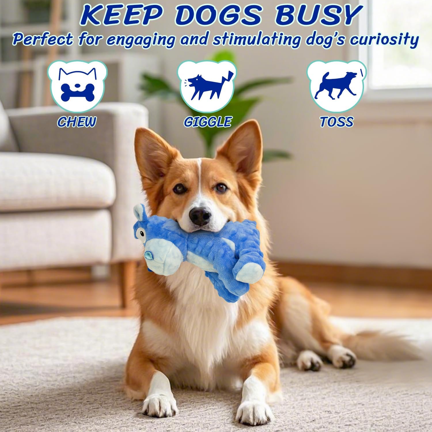 - SQUEAKY DOG TOY: This squeaky dog toy has built-in squeaker and crinkle paper. When the dog chews it or you presses it, the toy will make squeaky sound and fully arouse their interest to play, which can avoid destructive chewing and barking.