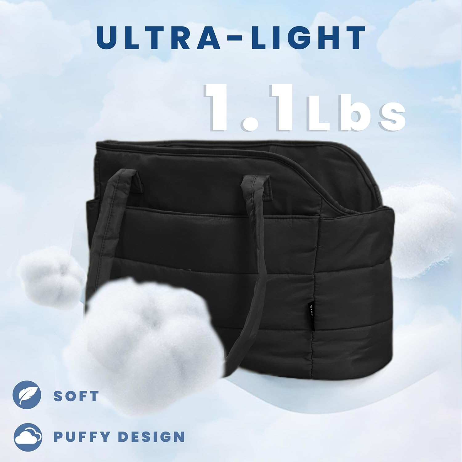 - Ultra-Light & Stylish Puffy Design: Weighing just 1.1 lbs, this chic puffy dog carrier is crafted from ultra-light materials with a fashionable quilted exterior. The removable padded hard-bottom base provides strong, stable support. Perfectly sized at 17"L x 8"W x 12"H to comfortably carry small dogs up to 15 lbs (6.8 kg)—ideal for Chihuahuas, Yorkies, puppies, and other toy breeds.