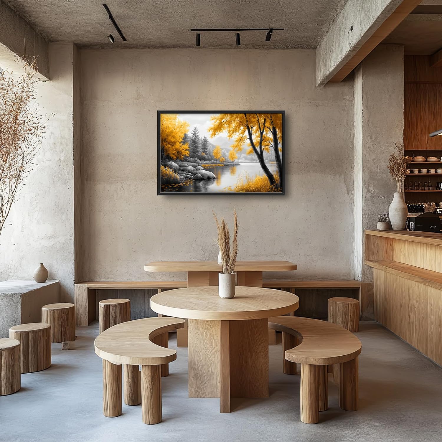 Framed Large Tree Wall Art for Living Room, Oversized Zen Trees Wall Decor, Black and Golden Forest Canvas Pictures Home Decoration for Living Room Bedroom Office 36"x24"