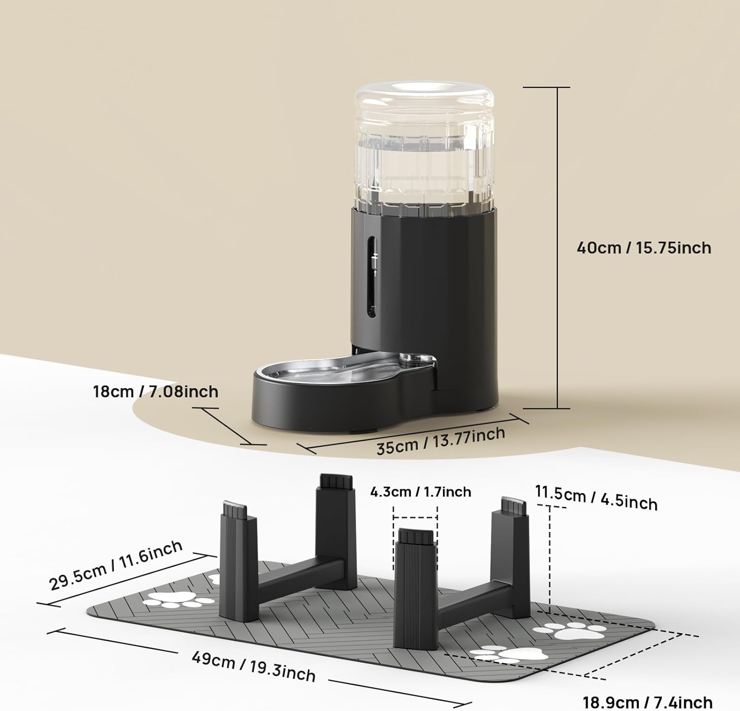 CZPET Elevated Dog Water Bowl Dispenser with Mat for Large Dogs,Tall Raised Pet Waterer Stand,Relieve Neck Pressure,Large Capacity and Drinking Area Noise-Free for Pets (7L+Stand+Mat)