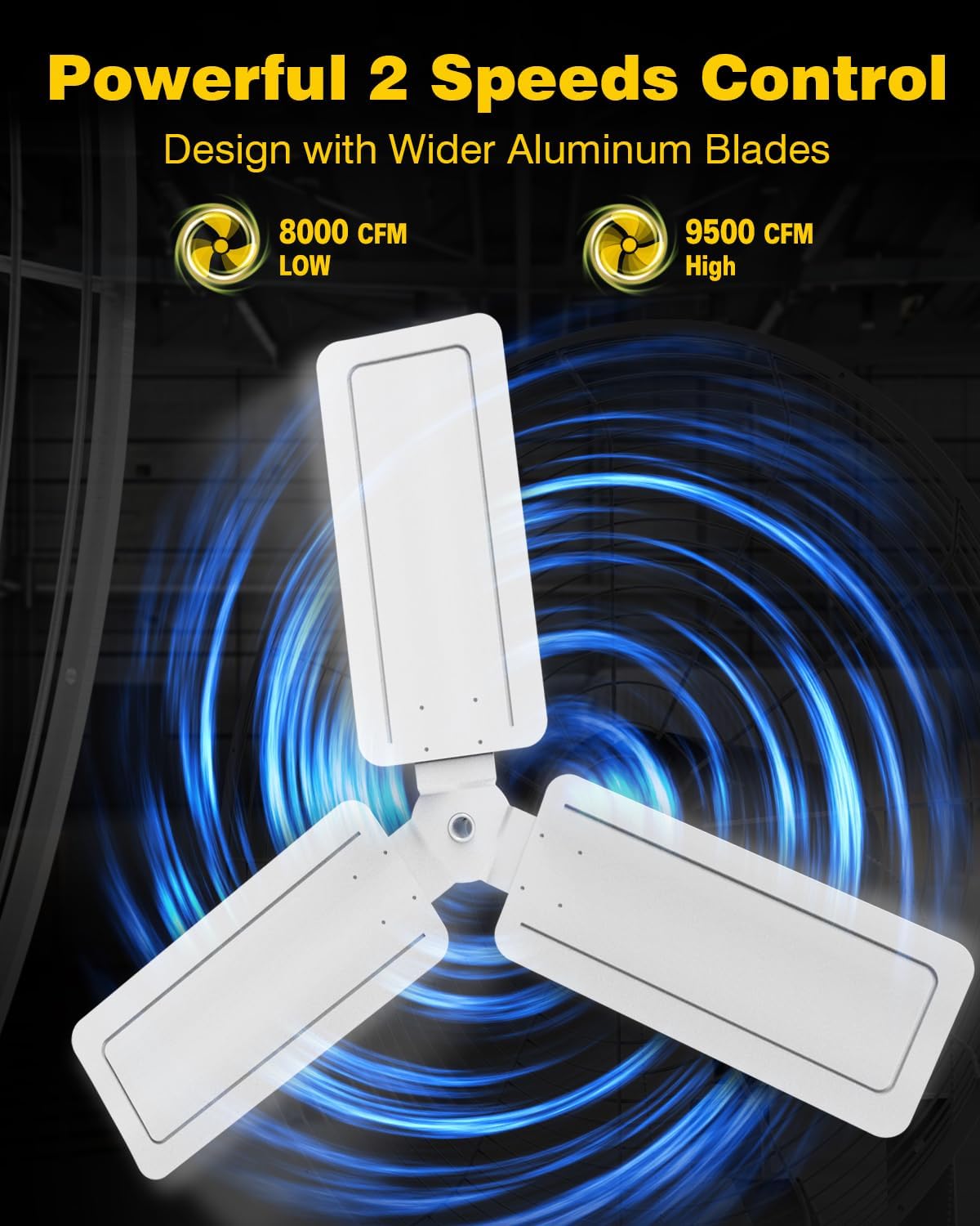 - Easy Assembling & Using: Industrial fan with a wall mounting bracket and hardwares to be easily mounted on the concrete wall. Equipes two chains to control three different speeds and oscillation.