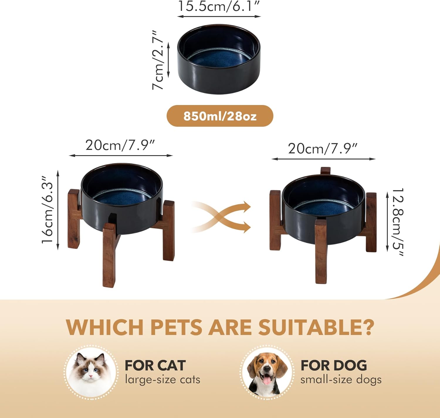 - Acacia Wood Stand: Adopting with classy acacia wood stand, this aesthetically pleasing ceramic dog bowls with stand fits perfectly with any home decor style. By flipping the stand over , you can get 2 different heights to hold the pet bowl. Let‘s elevated bowl company with your pet in different growth stages.