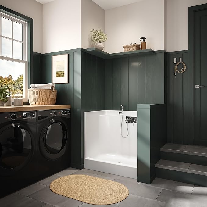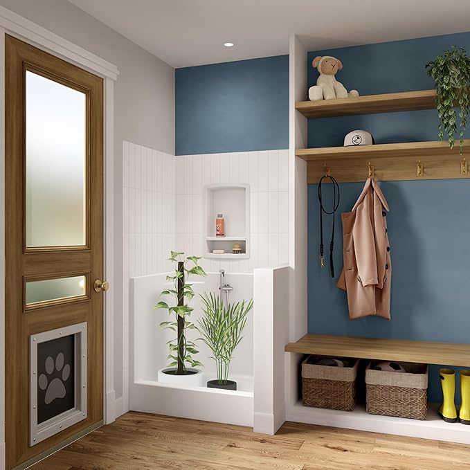 Laurel Mountain Odie 36" x 27" x 36" AcrylX Alcove Center Drain One-Piece Pet Shower in White with Hand-Held Sprayer in Chrome