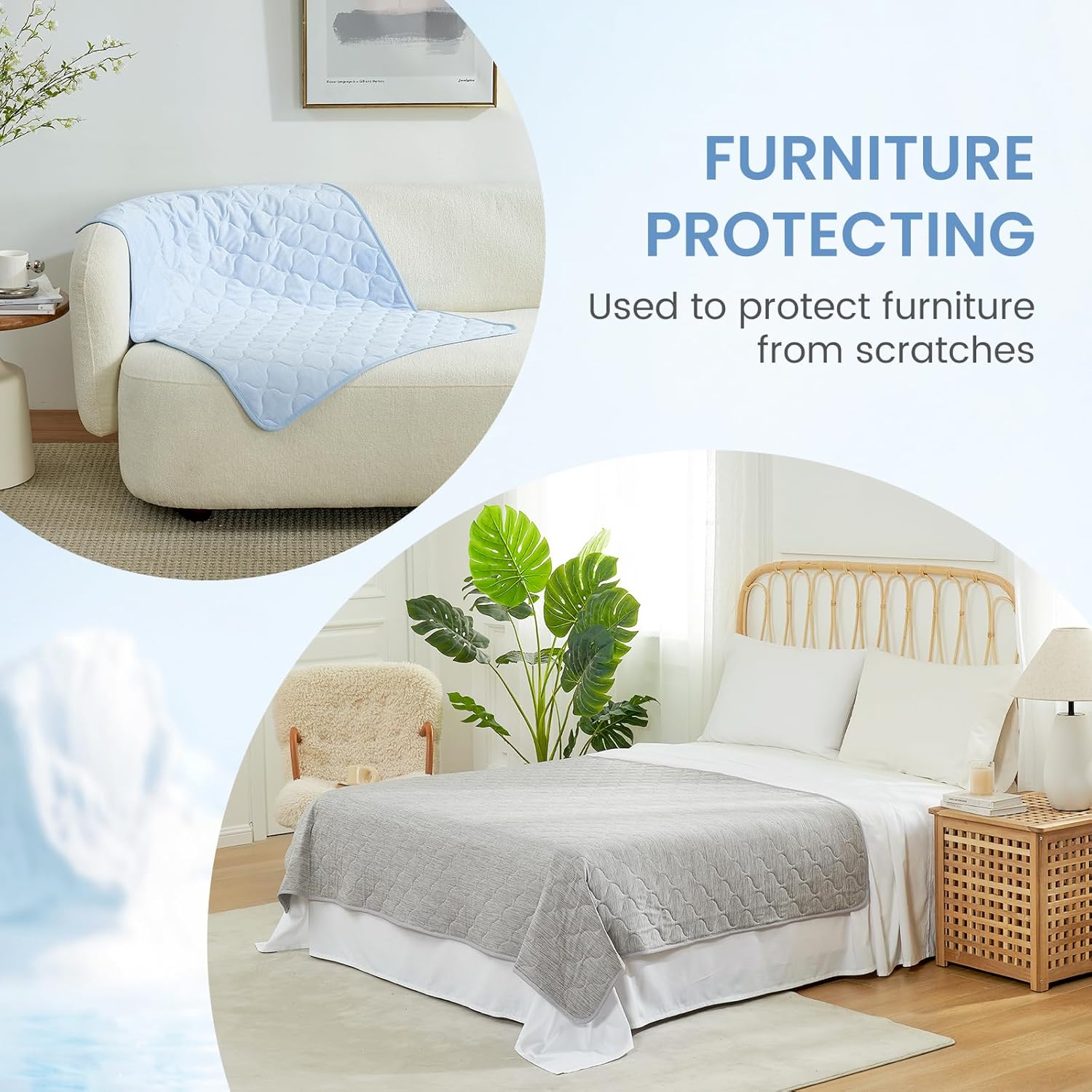 - INTEGRATED LEAKPROOF PROTECTION – Safeguards Your Furniture:Designed with a built-in leakproof barrier, the mat effectively prevents urine, drool, or moisture from seeping through to your furniture, crates, car seats, or flooring. Whether placed on a sofa, bed, or inside a pet crate, it provides reliable protection to keep your living space clean and odor-free.