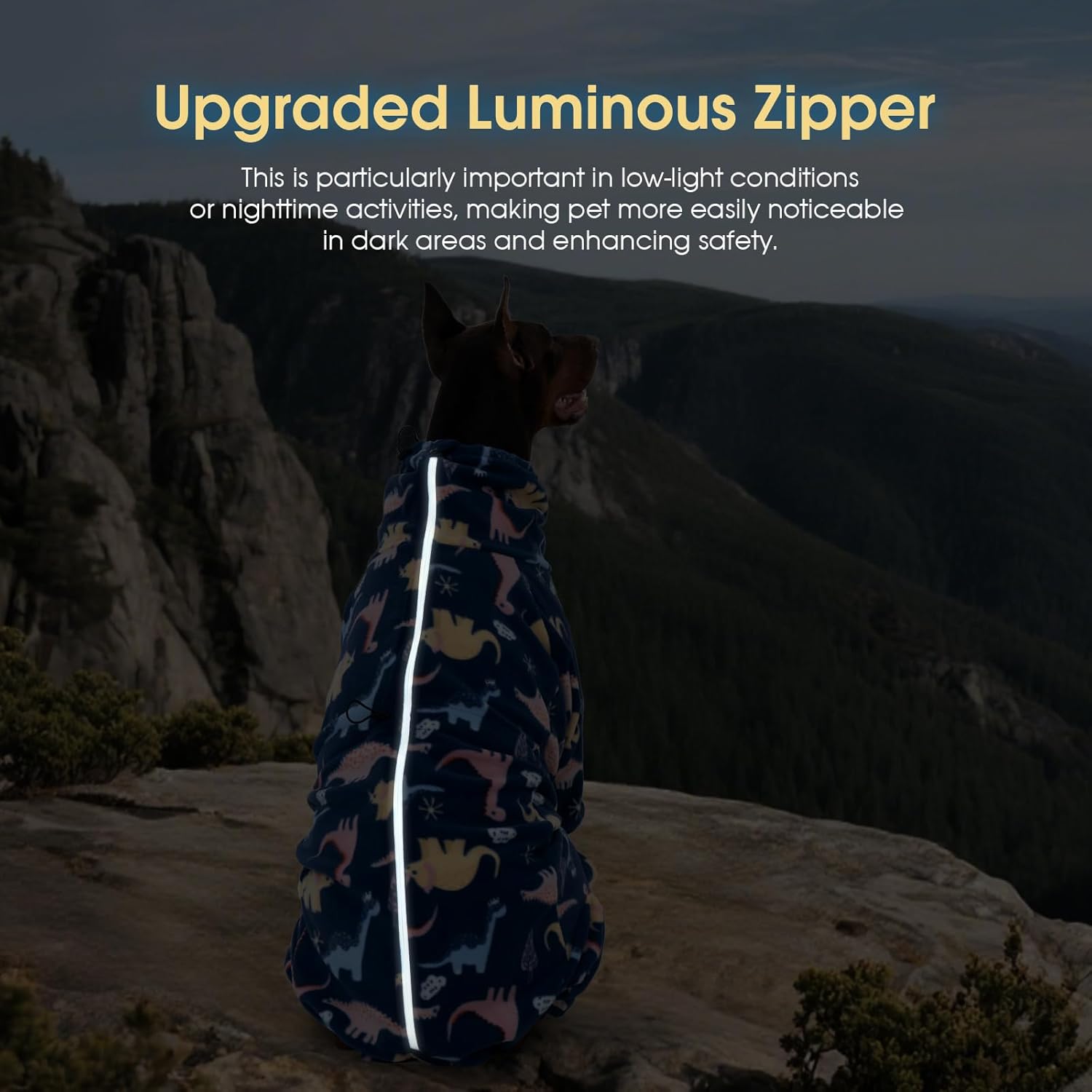 ROZKITCH Dog Fleece Jacket Soft Fleece Pullover Pajamas, Pet Windproof Warm Cold Weather Jacket Vest with Reflective Zipper, Jumpsuit Apparel Outfit Clothes for Extra Large Dog Dinosaur 4XL