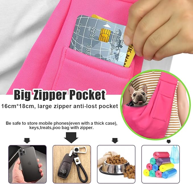 - Large-capacity classic pockets to store things: TOMKAS has a big pocket WITHOUT zipper on the front that can help you store your keys, cards, poop bag, wallet, some treats and even a dog leash; other dog slings without zippered pockets, It is easy to cause items to fall out during use. Especially the mobile phone, once it falls out, it will waste a lot of money. It is important to buy a reliable TOMKAS small dog carrier with a zippered pocket.