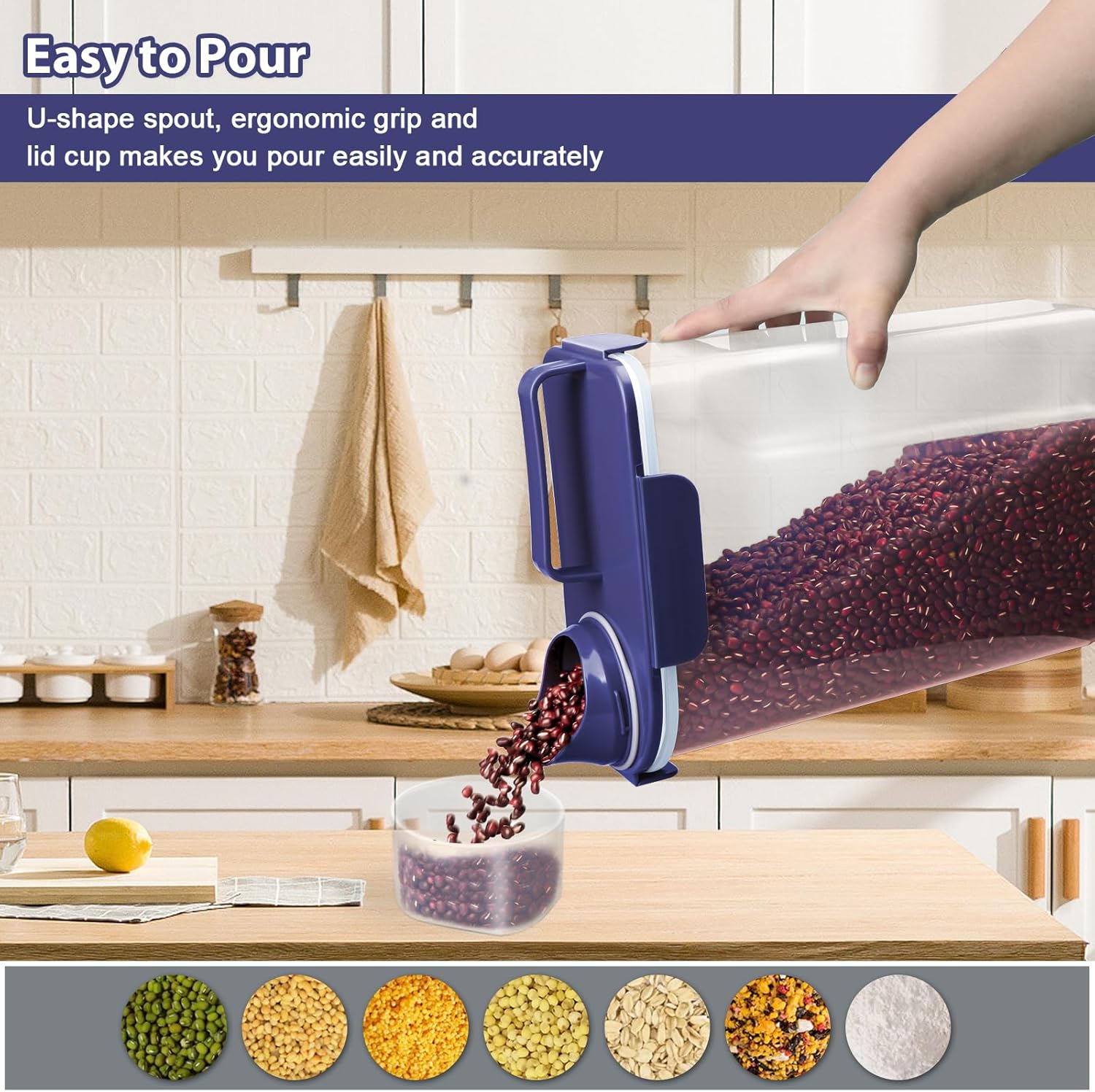 - 🥫【Airtight Seal Rice Storage】The airtight rice storage diepenser with featuring airtight 4 side-locking lid and measuring cup screw on over the pour spout, can protect food from moisture, ants and all bugs, and keep them dry and fresh. Say goodbye to stale and soggy food!