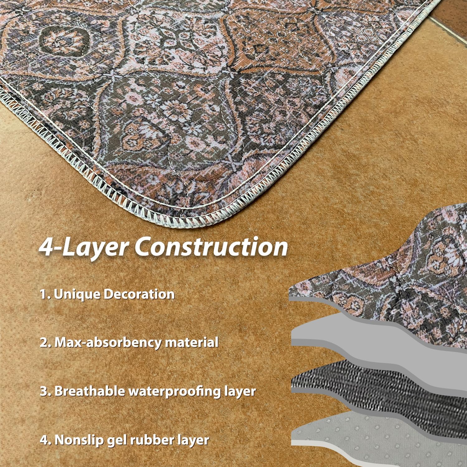 nunubaby Washable Pee Pads for Dogs, Stylish, Non-Slip and Leak-Proof Pee Pads. Reusable Potty Pads for Dogs for Crates and Floors.(Brown/Multi, 36" x72")