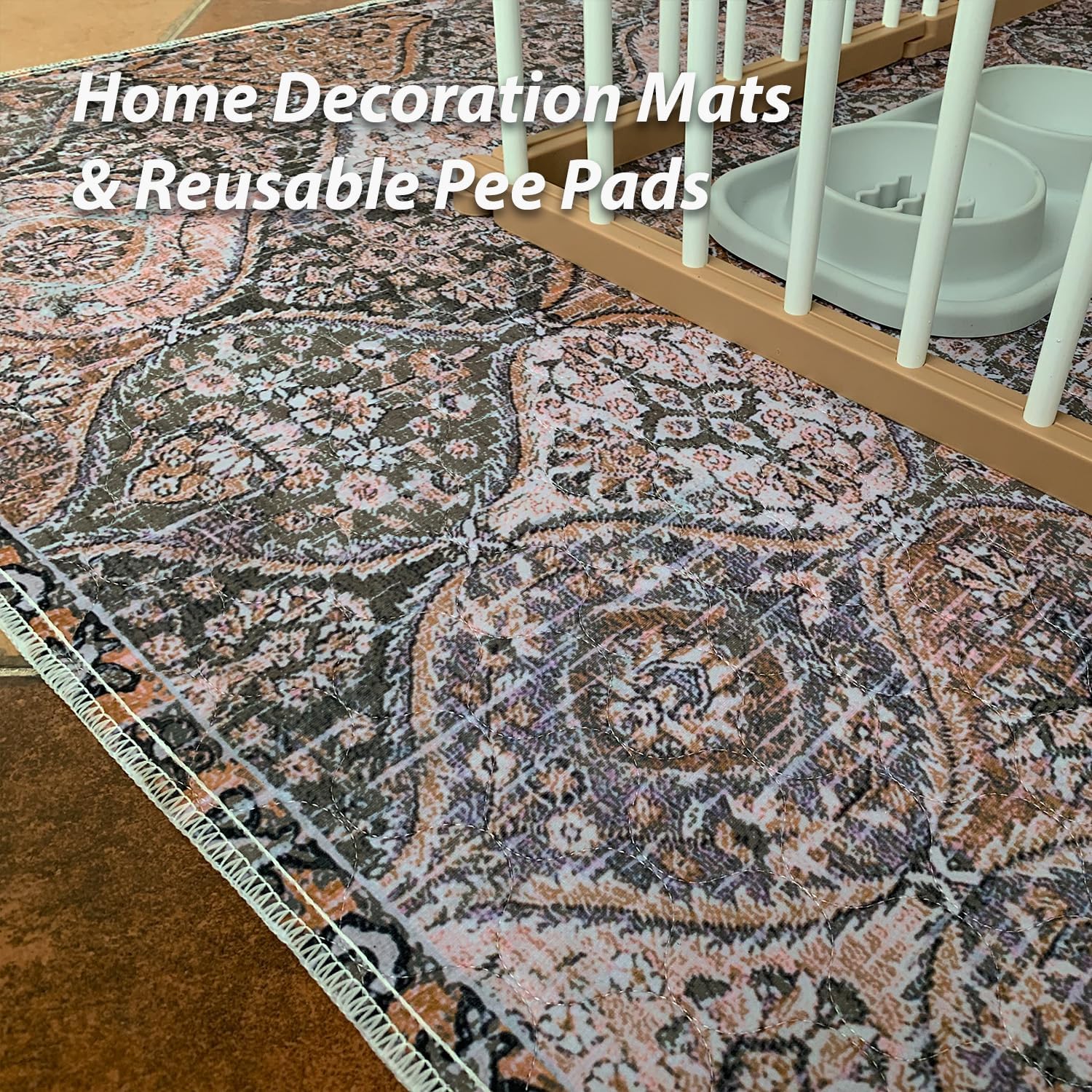 nunubaby Washable Pee Pads for Dogs, Stylish, Non-Slip and Leak-Proof Pee Pads. Reusable Potty Pads for Dogs for Crates and Floors.(Brown/Multi, 54" x54")