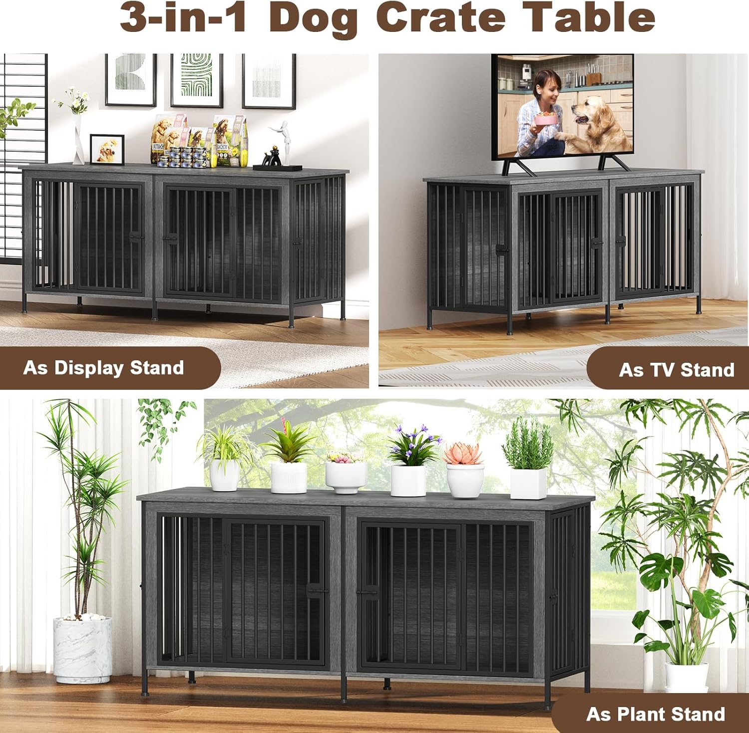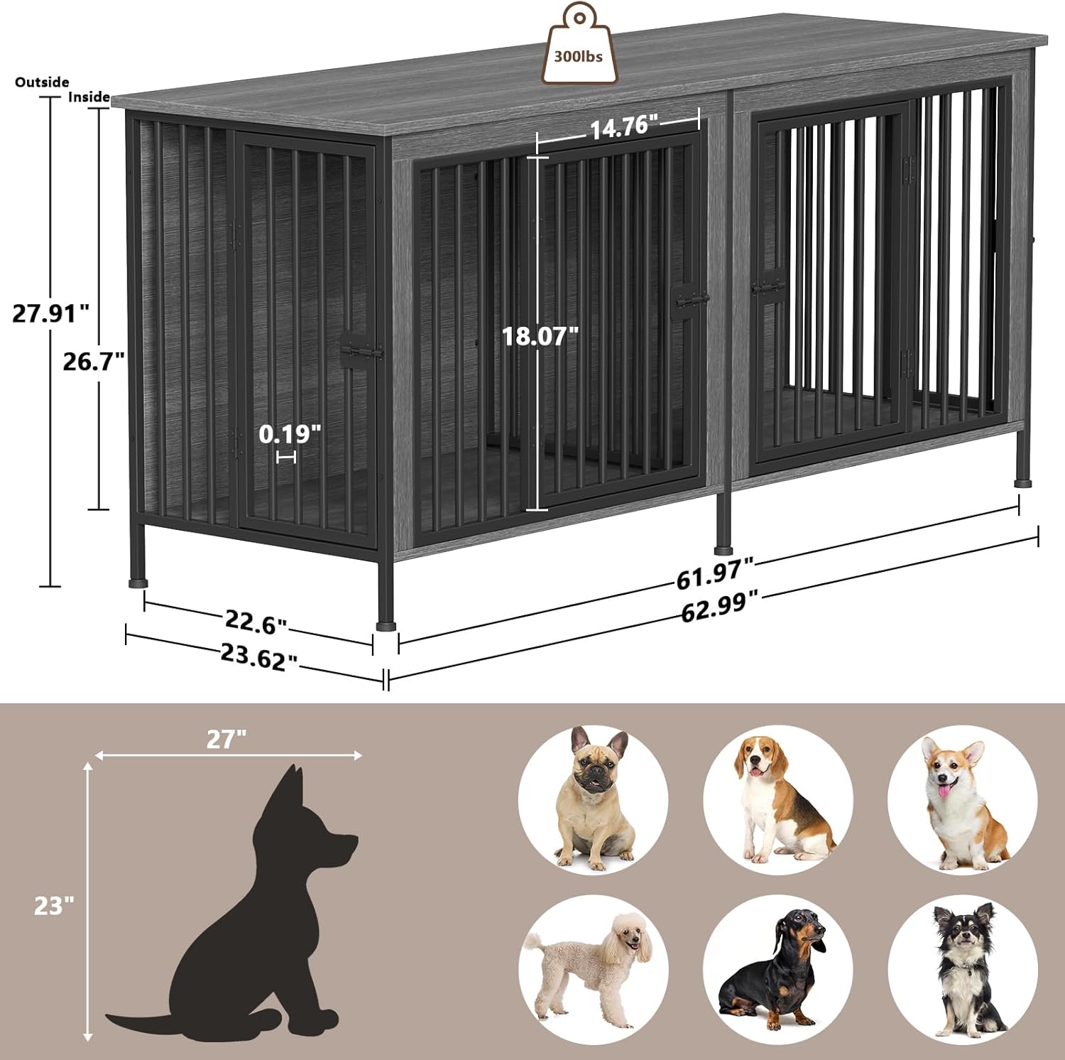 • 【Provide Ample Space for Dogs】: With 63" W x 23.62" D x 27.56" H dimension, the dog kennel furniture can allows 2 dogs to have a comfortable and spacious living space, avoiding anxiety and unease due to limited space. The middle partition can be installed or removed according to your needs, the specific installation steps can refer to the detailed manual.
