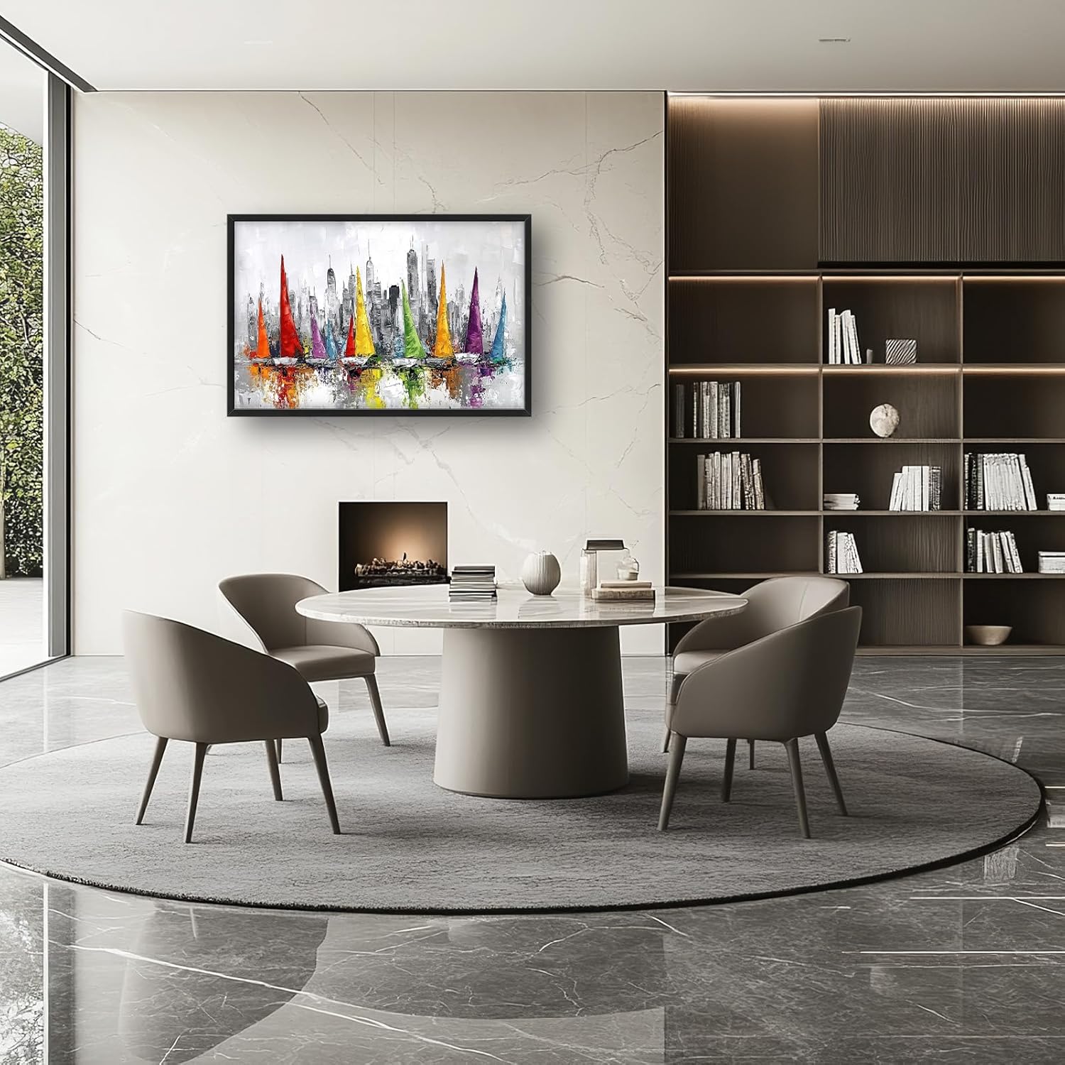 Framed Large Sailboat Wall Art for Living Room, Oversized Abstract City Wall Decor Colorful Sailboat Canvas Painting Pictures Modern Artwork for Living Room Bedroom Office Dinging Room 36"x24"