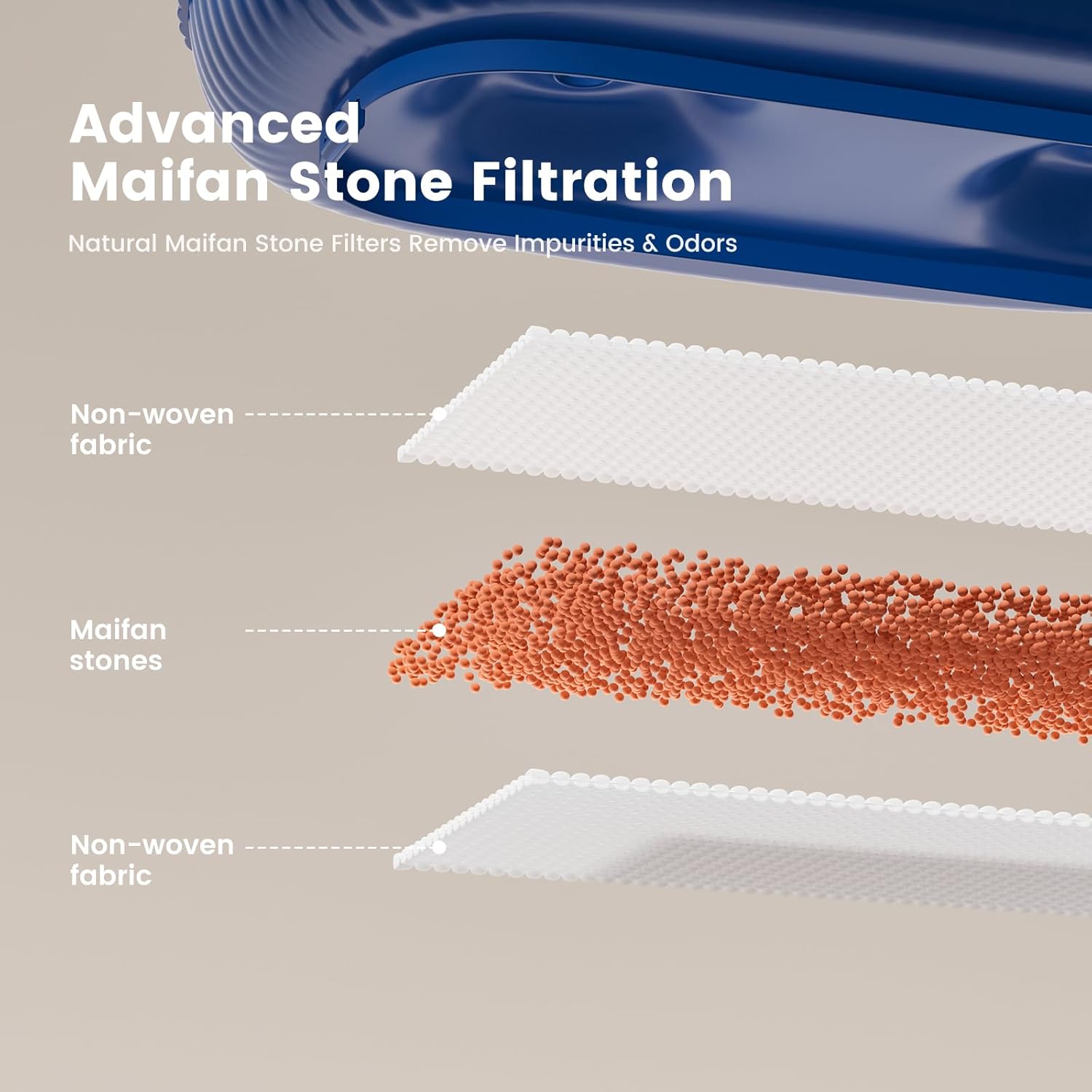 - 3-Layer Maifan Stone Filtration & UV — Non-woven fabric + natural maifan stone + non-woven fabric trap hair, dust, and impurities. and the Water Pump Built-in UV to keep the water hygienic. Includes 2 replacement filters(and thanks so much for our dear customer message. our filter products will be available for sale in as soon as two months).