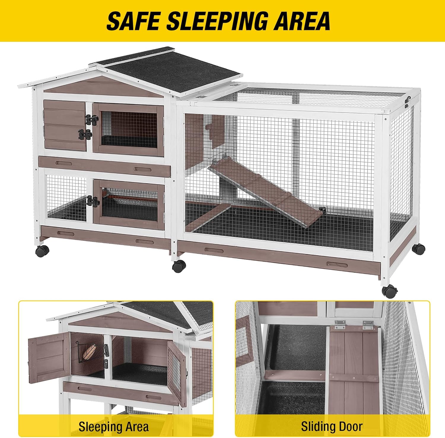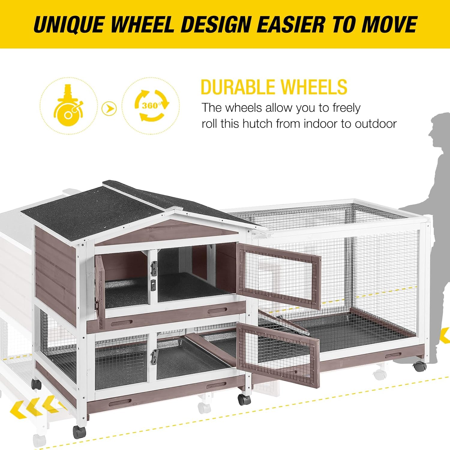 - 【Easy Movement】6 wheels make it easy to move the rabbit hutch wherever you like.