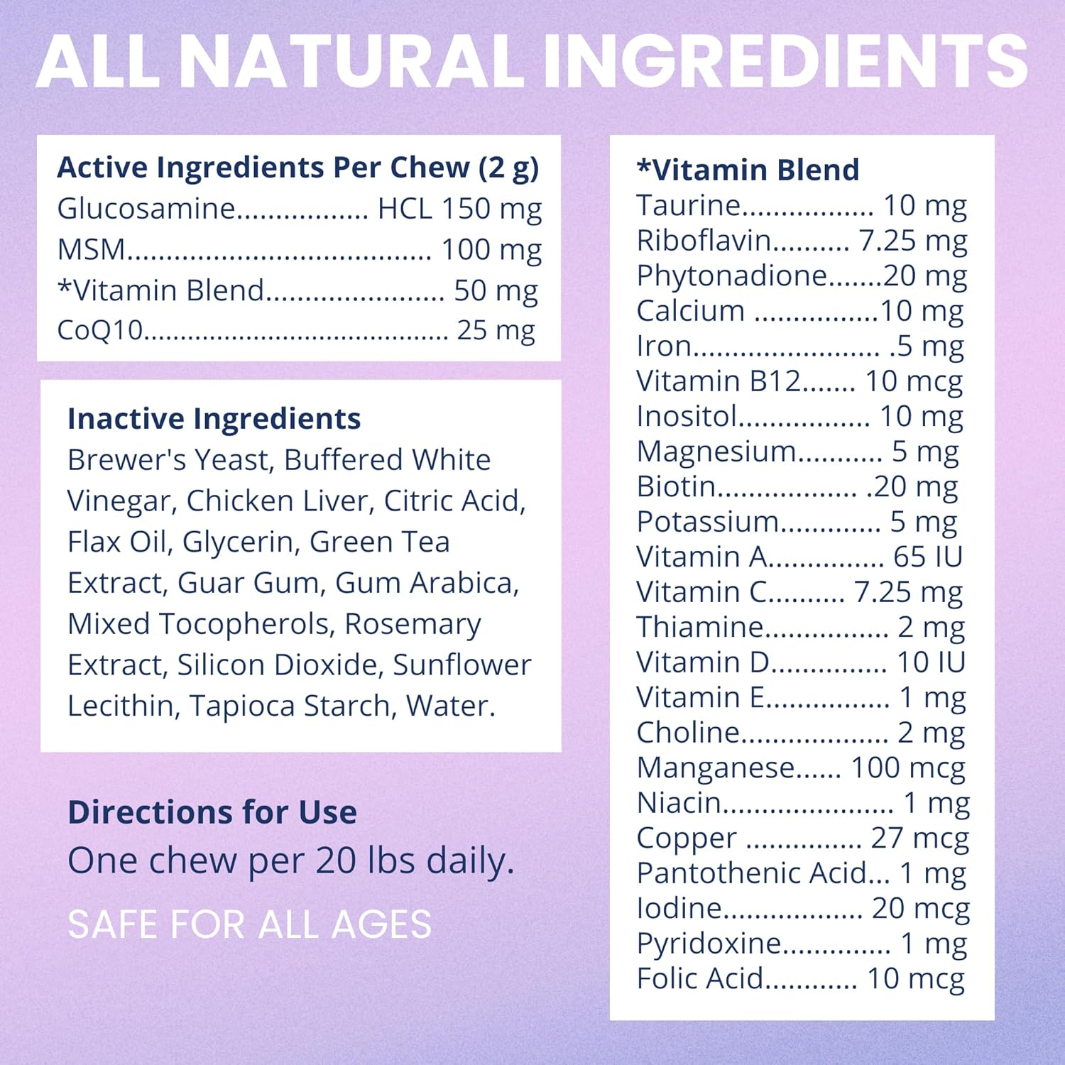 - Clean Ingredients You Can Trust: Made without fillers or by-products, and preserved with rosemary extract and mixed tocopherols. As part of your go-to pet vitamins and supplements, it supports your dog’s wellness using only wholesome, real ingredients.