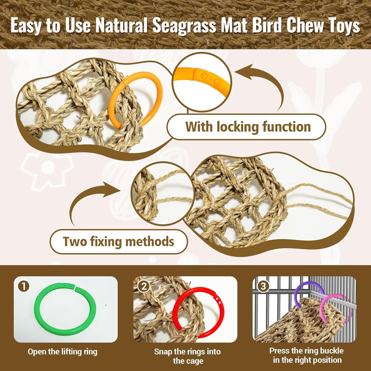 - Natural Material: Seagrass mats for birds is hand-woven from natural seagrass, which is sturdy and durable. Provides endless entertainment while keeping the birds at ease and safe