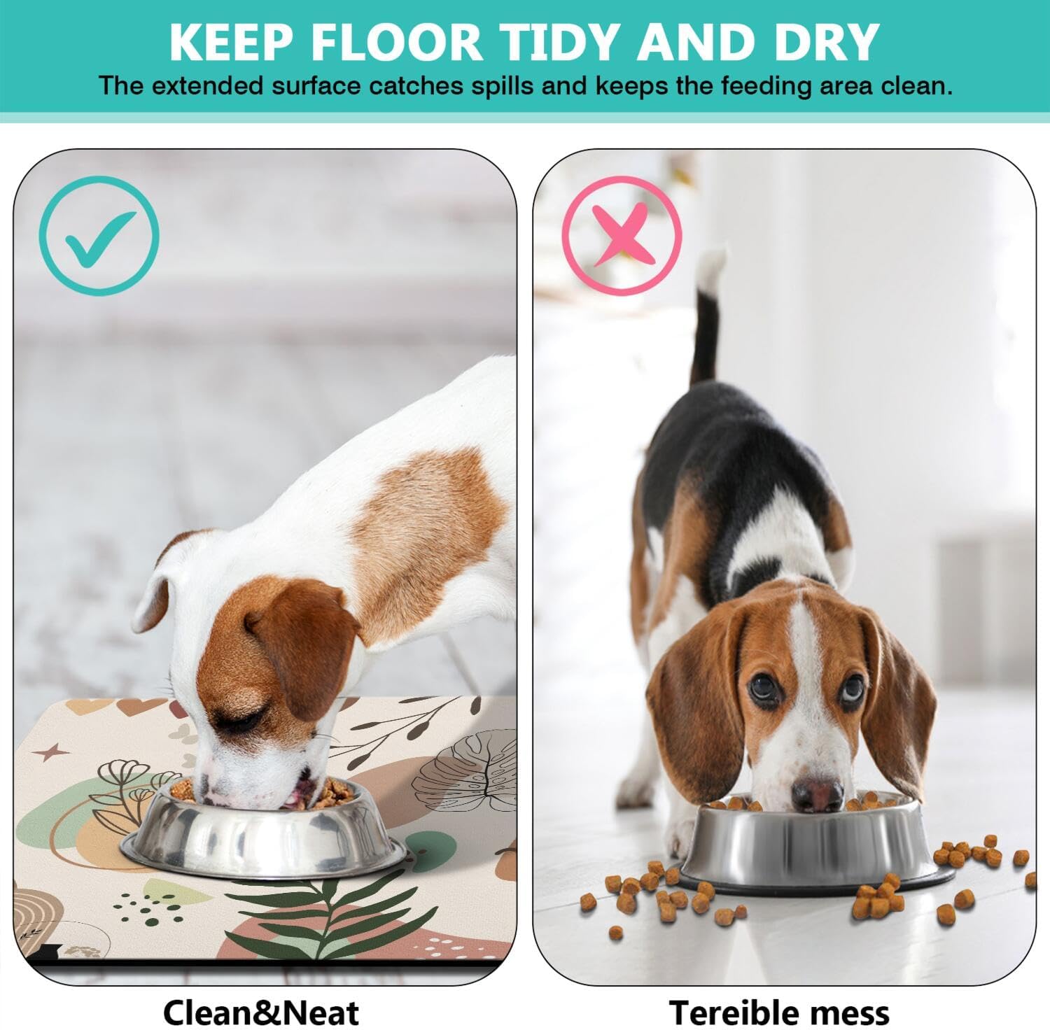 • Waterproof & Easy Clean Dog Food Mats for Floors Waterproof - Unlike regular mats, our heavy-duty dog food mat features a 100% waterproof layer that prevents liquids from seeping through the floor. Simply wipe clean your dog bowl mat after meals - no staining or odors! Works great as both a dog food mat and cat food mat.