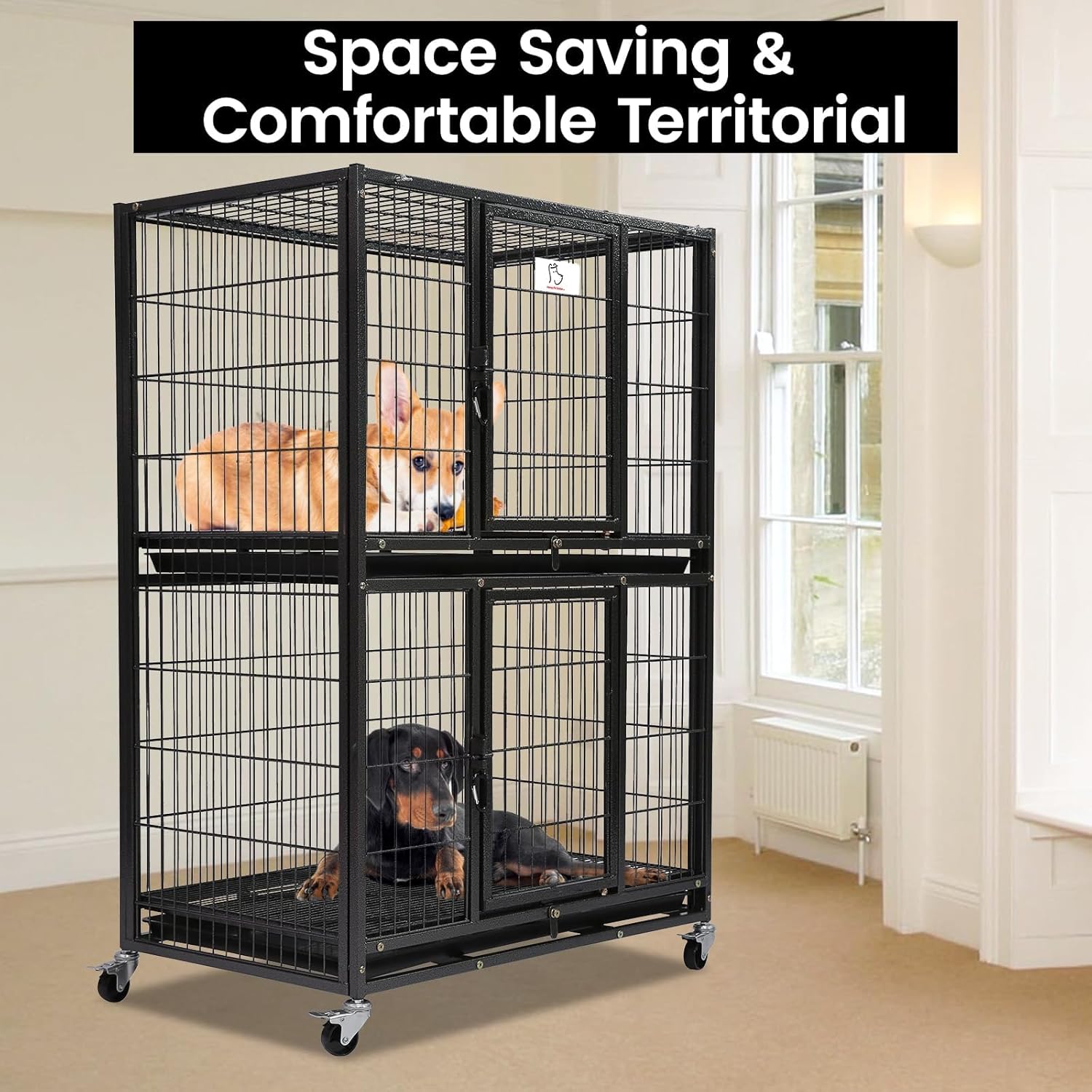 - Sturdy Integrated Design: Our two packs two-tier 31 inch dog crate for small dogs features an integrated design, providing exceptional stability and reducing the tipping or wobbling. The overall dimensions are 31"L x 20.3" Wx 45.67"H, with each tier measuring 18.1" in height, accommodating pets up to 45 pounds per tier. This vertical space-saving design is ideal for breeders, kennels, multi-pet households, pet hospitals, and groomers