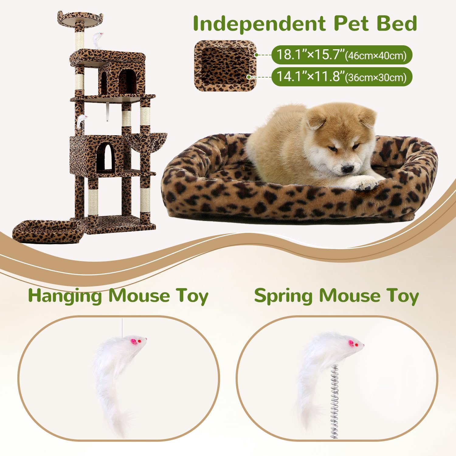 Globlazer Heavy Duty Cat Trees for Large Cats, Sturdy 72in Maine Coon Cat Tree for Large Cat 20 lbs+ Heavy Duty Cat Tower for Adult Biggest Cats with 6 Scratching Posts, Hammock, S72, Leopard Print