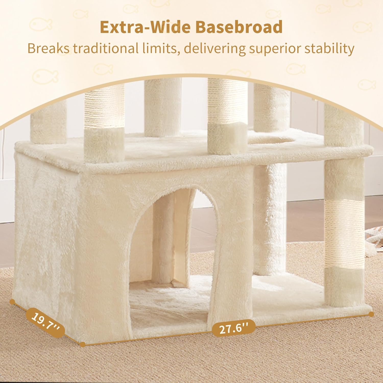- Extra-Large Base: This cat tree for indoor cats large adult features a spacious 27.6”×19.7” base for a lower center of gravity, ensuring superior stability and added safety for your feline.