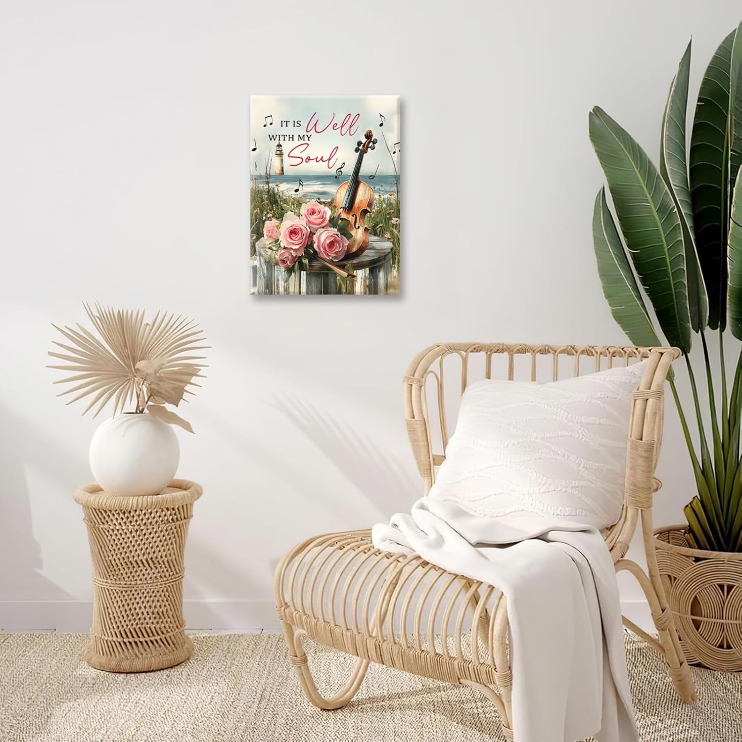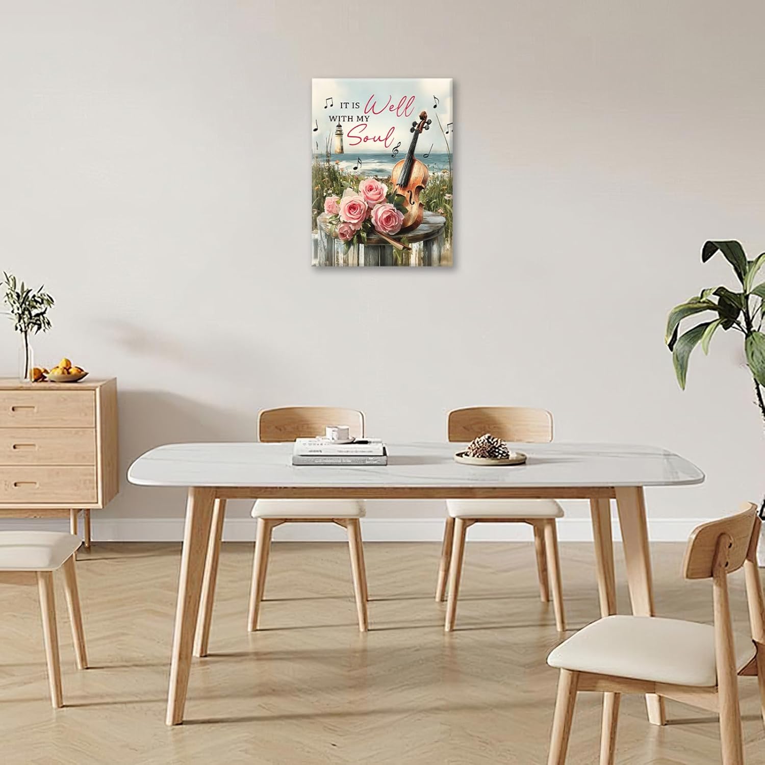 Violin Pictures Wall Art, Music Rustic Country Inspirational Bathroom Wall Decor, Coastal lighthouse Framed Painting Rose Aesthetics Canvas Artwork for Bedroom Living Room Decorations 20"L x 16"W