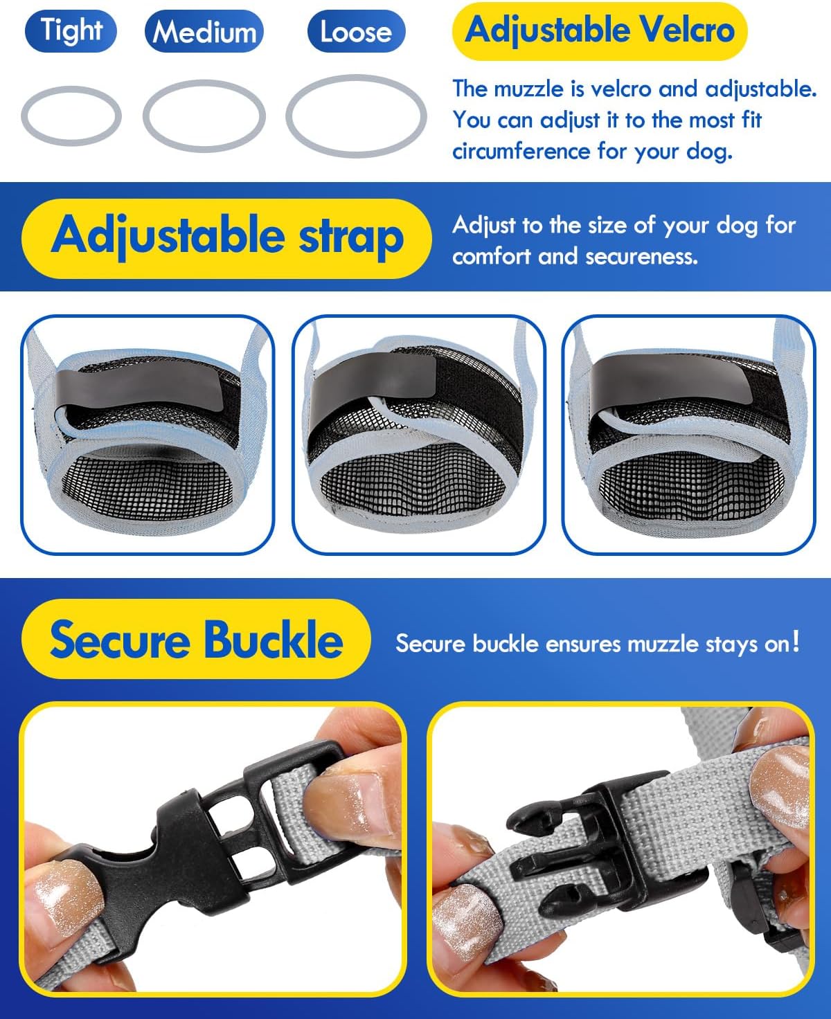 - FEATHERLIGHT COMFORT: Say goodbye to unnecessary stress! Crafted from lightweight mesh, our no-bite muzzle for dogs is built to withstand the wear and tear of daily use. By providing comfort and zero burdens, our dog mouth cover ensures a positive experience for you and your furry friend. Whether you're training, socializing, or simply need a muzzle for vet visits, the mesh muzzle is the ideal choice