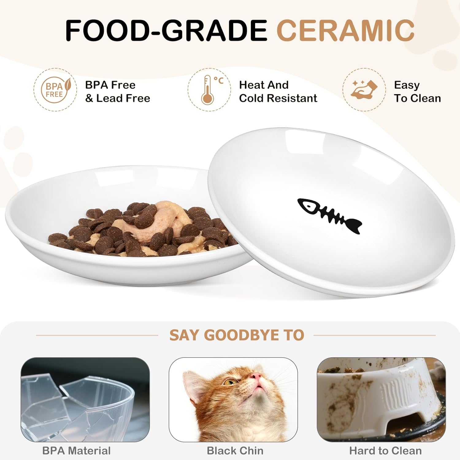 - Premium Ceramic Safety: Crafted with non-toxic, high-fired ceramic, these cat bowls feature lead-free glaze for ultimate safety. Vets recommend using ceramic cat food bowls to prevent "black chin" stains—non-porous glaze blocks dirt buildup, keeping your pet's face clean and healthy.Safe for microwave use – ideal for warming meals. Durable construction maintains integrity through years of daily use.