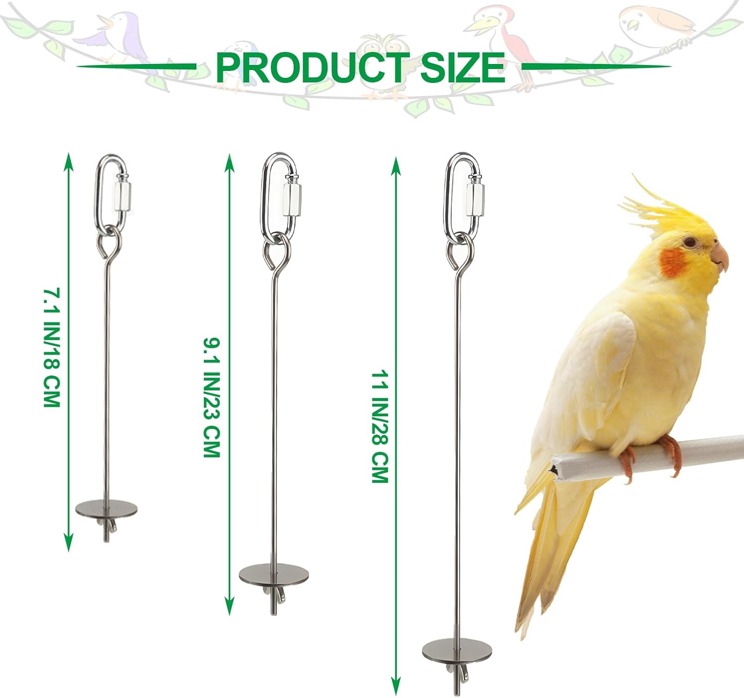 - Three Sizes Available – Choose from 6.9in/17.5cm, 8.9in/22.5cm, or 10.8in/27.5cm to suit cages of any size. Suitable for parrots, hamsters, chinchillas, and more.